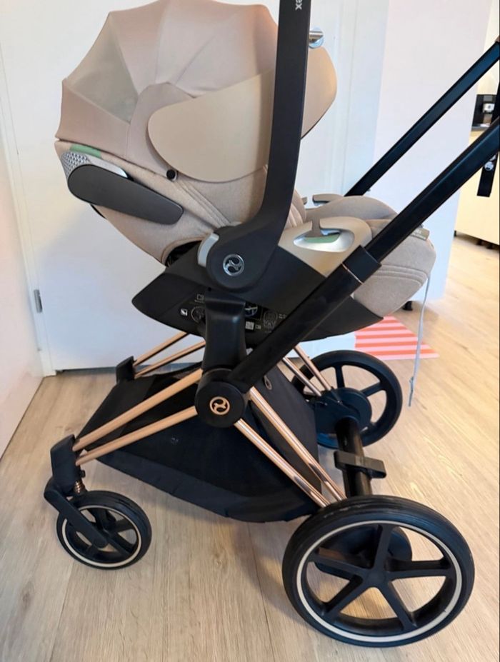 Poussette Cybex E Priam en très bonne état toujours bien entretenu vendu avec le cosy l’assise ainsi que la nacelle aucune trace d’usure ou de rayure plus de renseignements ou photos contact via WhatsApp aux +33746556237