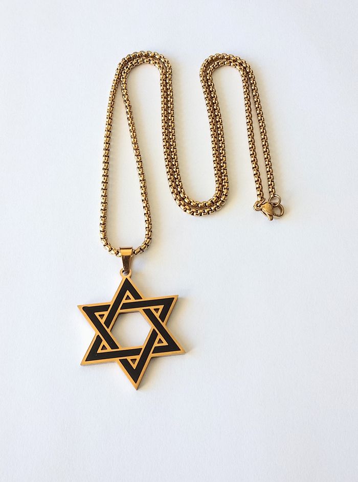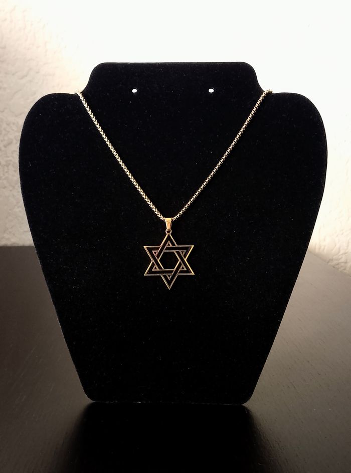 Chaîne + pendentif religieux. Pendentif : hexagramme. (religieux, protection, spirituel, celtique, idéal cadeau) DESCRIPTIF : Couleur : doré, noir. Taille chaîne : 60 cm Diamètre pendentif : 3 cm L * 3,7 cm H Envoi rapide et soigné.