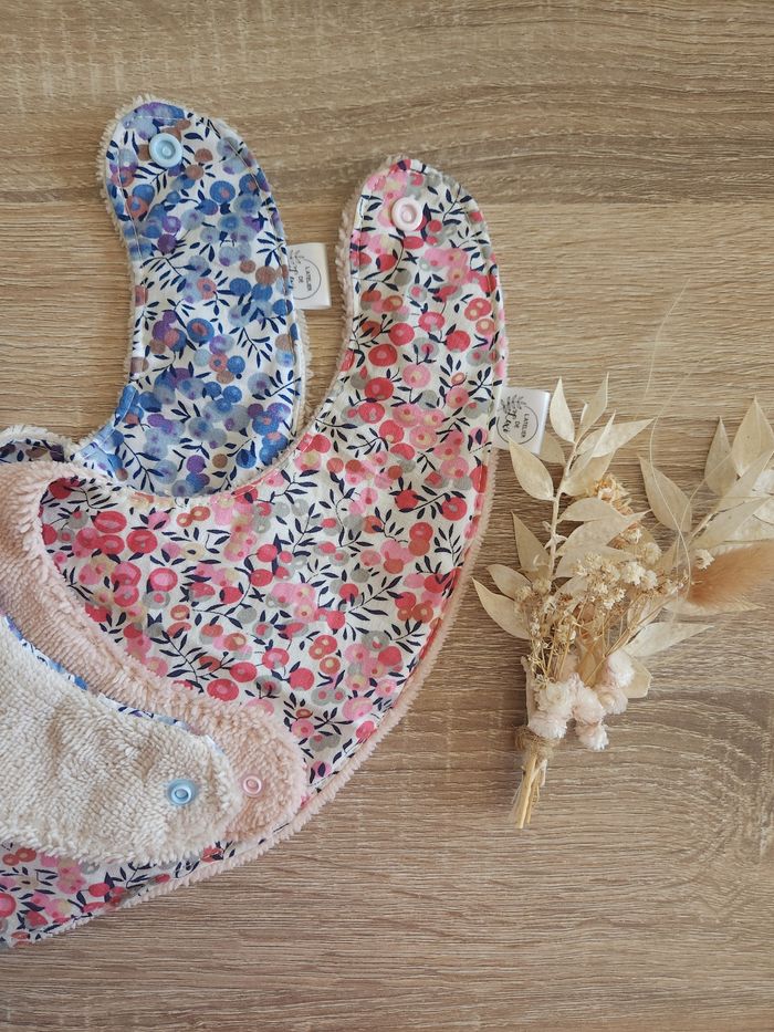 Duo de bavoirs bandana bébé – Liberty ✨ Taille : de la naissance (0 mois) jusqu’à 2 ans ✨ Fermeture pratique à pression (sécurisée et facile à utiliser) ✨ Tissu liberty Betsy – chic, intemporel et élégant ✨️ Tissu arrière en éponge de bambou très absorbant Idéal pour garder bébé propre tout en ajoutant une touche raffinée à ses tenues. Lot vendu ensemble.