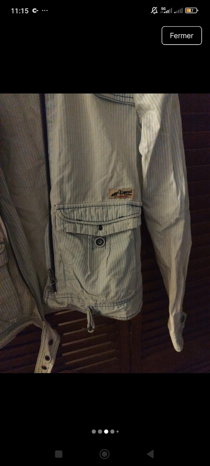 Veste a rayures blanc/ bleu ciel, porté plusieurs fois.