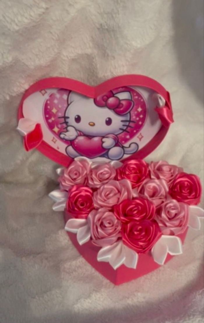 Rose éternelle dans une jolie boîte en forme de cœur Hello kitty