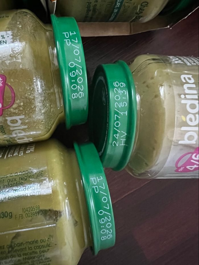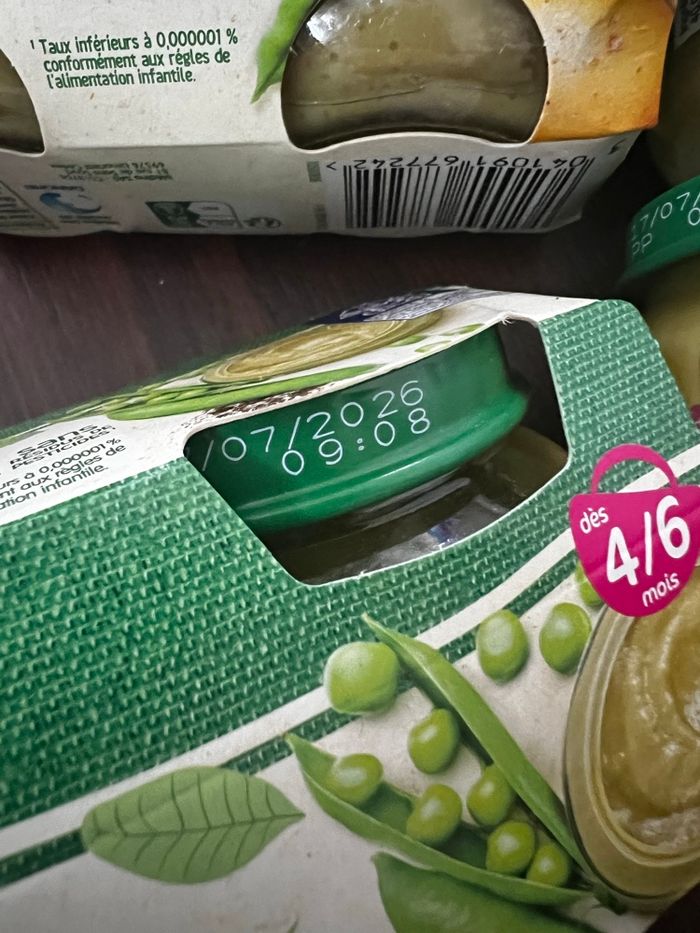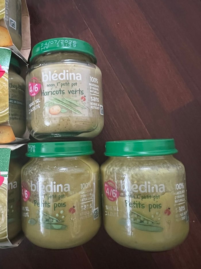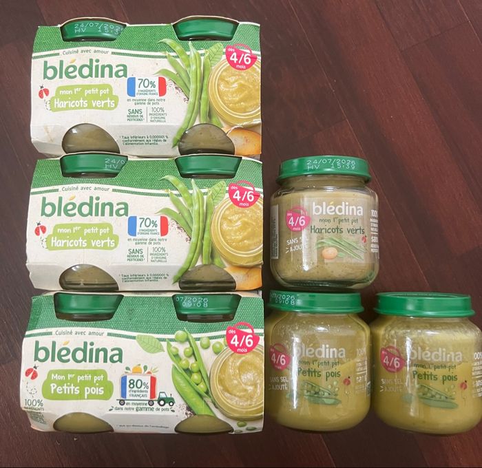 9 petits pots : 5 Pots de haricots verts et 4 de Petits pois 🫛