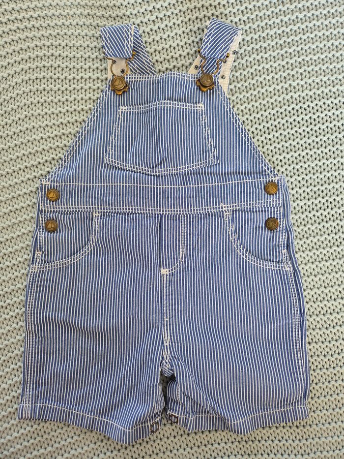 Salopette courte bleue à rayures blanches verticales Marque Petit Bateau. Taille 6mois. #mimidacgarçon #mimidacgarçon6mois