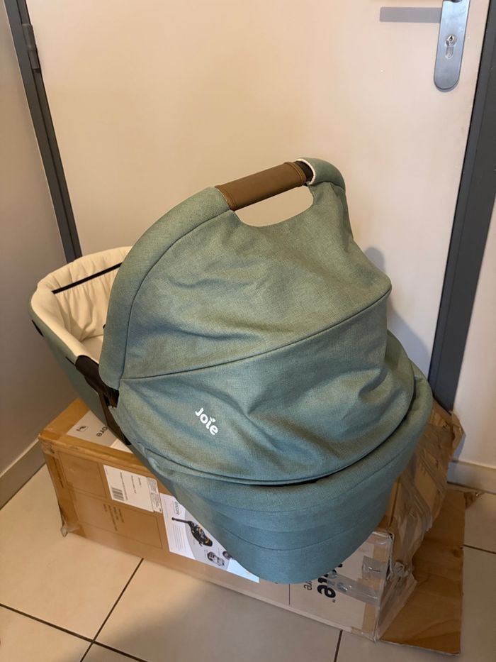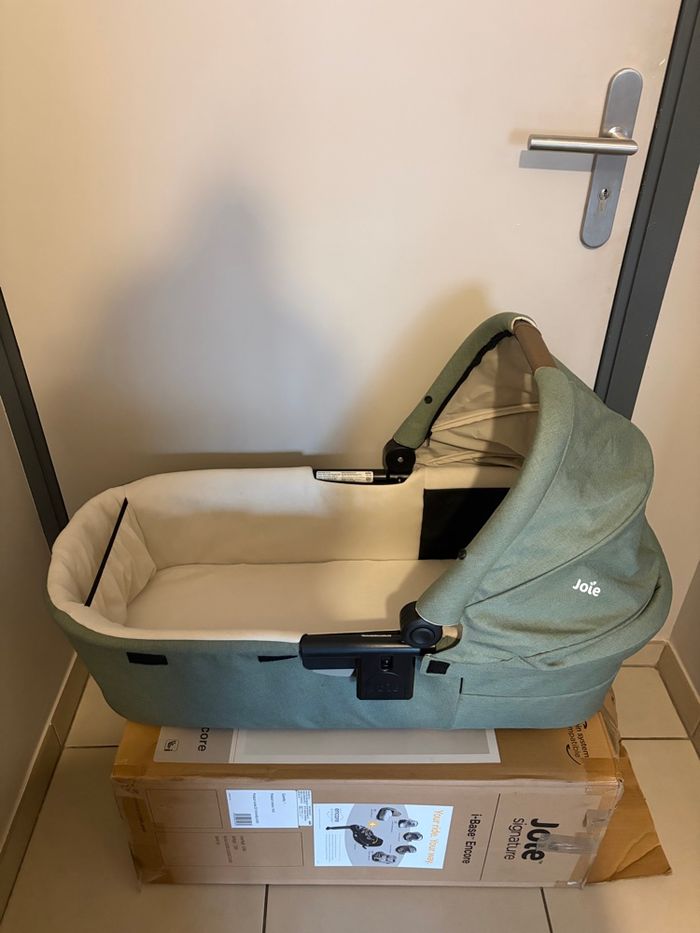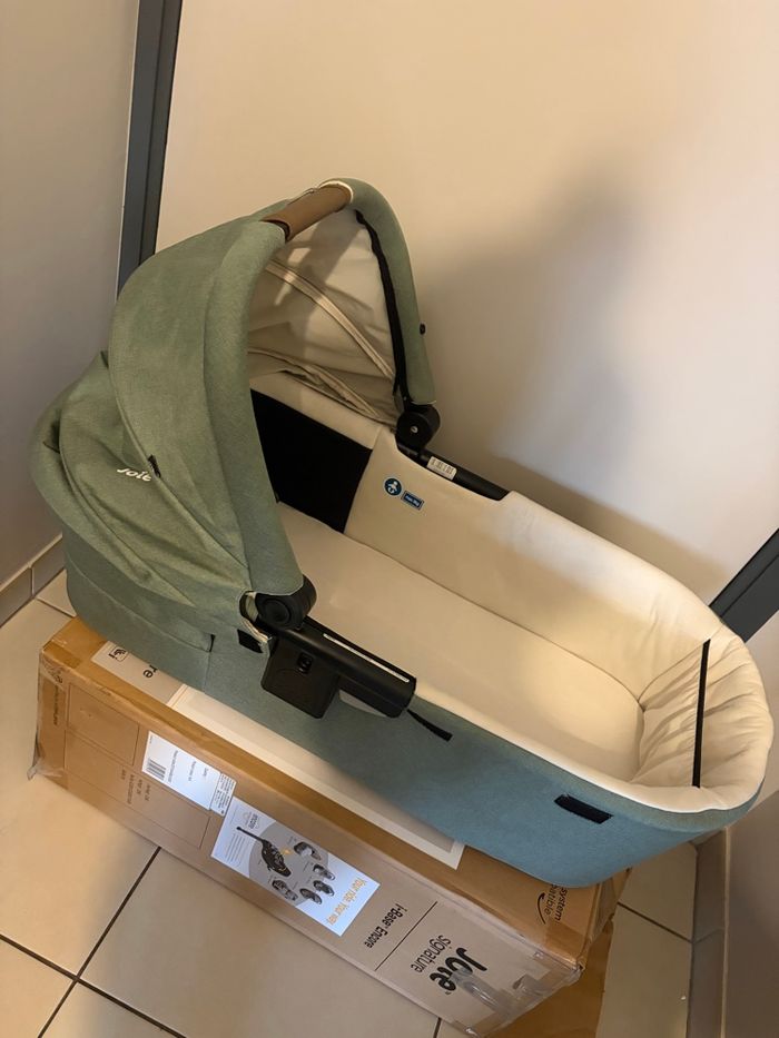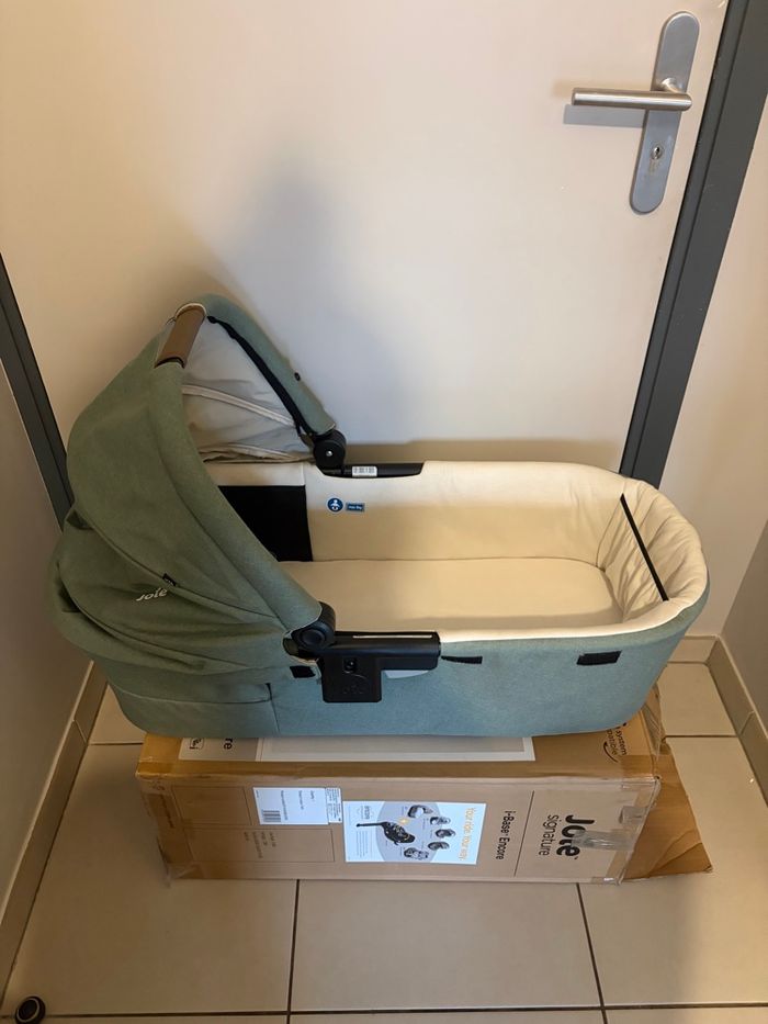Idéalement vendu avec le trio poussette et siège auto . Tablier couvrant intégrée facile à installer Certification : norme EN 1466:2014/ AC:2015 Âge d’utilisation : de la naissance jusqu’à 9 kg Poids : 2,97 kg Dimensions : L 90 x l 41,2 x 58 cm Coloris : vert (Laurel)