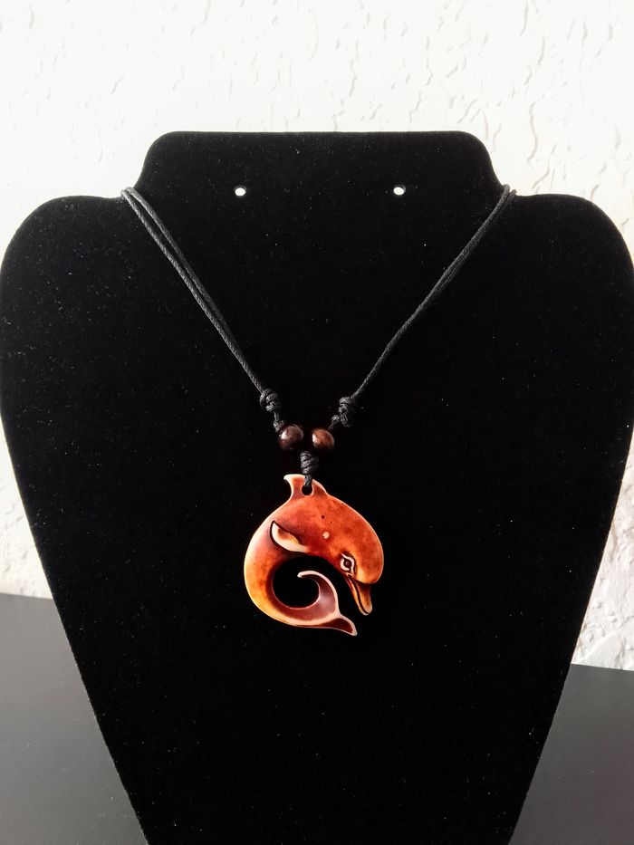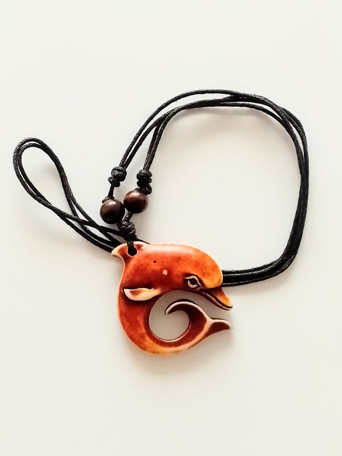 Collier corde réglable, pendentif dauphin. Pendentif : dauphin. DESCRIPTIF : Couleur : marron Diamètre pendentif : 4 cm * 5 cm H Envoi rapide et soigné.
