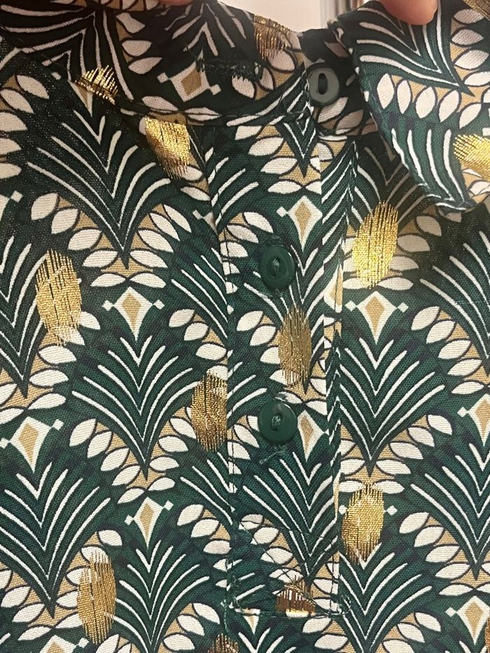 Blouse tunique verte et or  - photo numéro 2