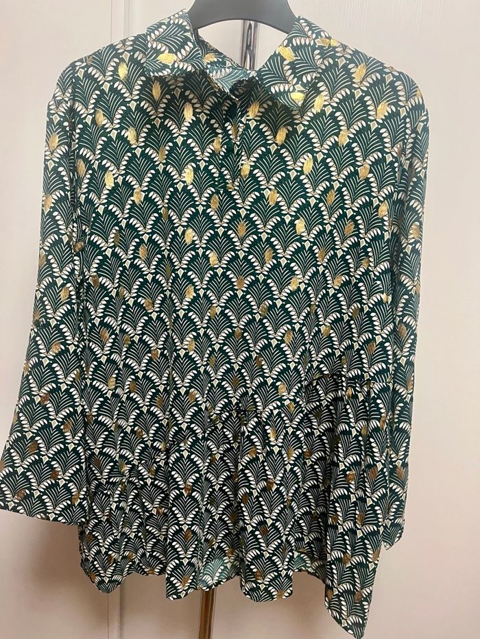 Blouse fluide de couleur verte et or Taille unique, elle convient bien pour du 44 62 cm d'aisselles à aisselles Couleur vert foncé et or Neuve sans étiquette