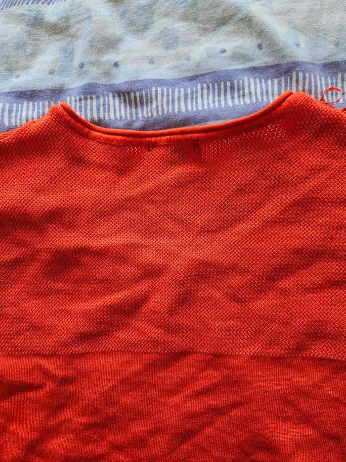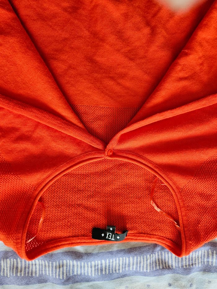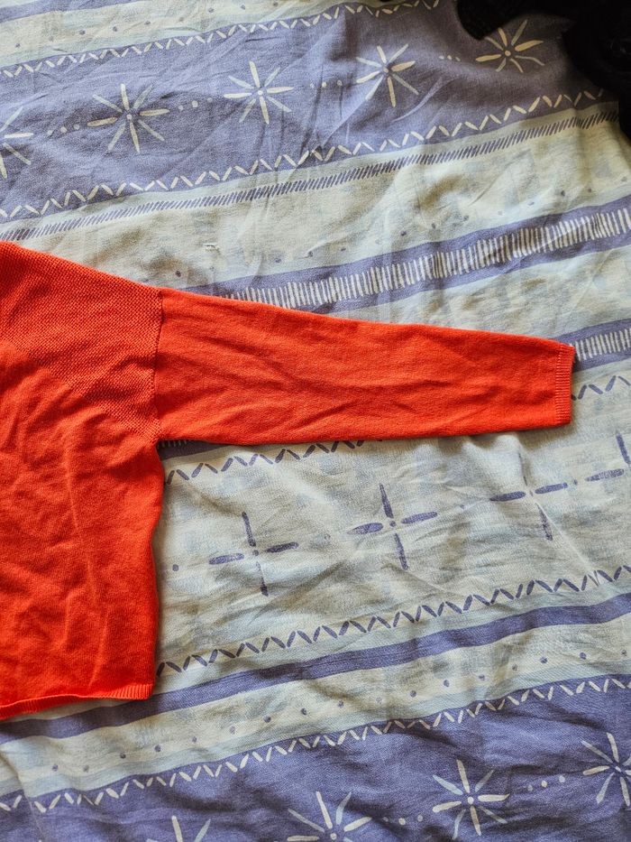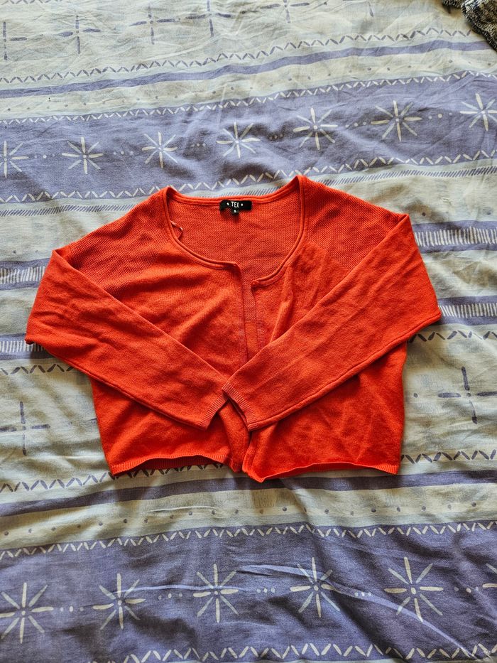 Cardigan court orange tex avec un bouton motif transparent devant et derriére