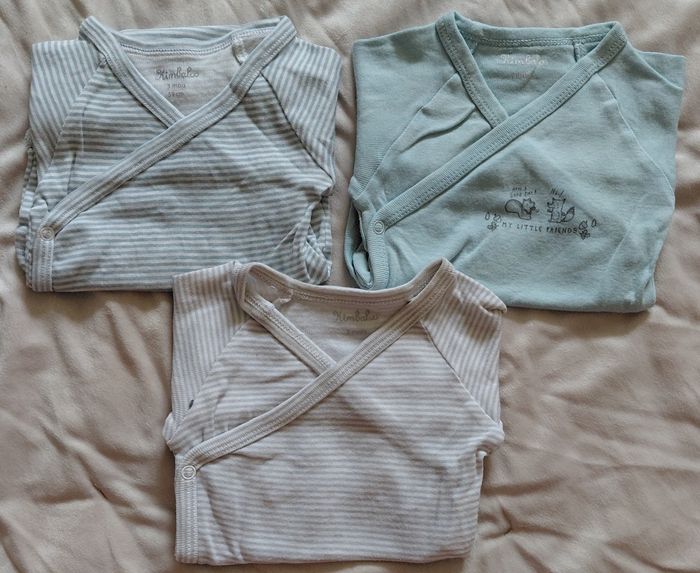 3 bodies/body manches longues garçon 3 mois. - Type de produit : bodie/body - Taille : 3 mois / 60/68 cm - Marque(s) : kimbaloo - Couleur(s) : blanc/gris/bleu claire a rayures et sans rayures. Réductions de lots activée, jusqu'à -50%. Prix tout de même négociable sur les lots a partir de 15€ et dans la limite du raisonnable.😉 Envoie rapide dans les 24h ➡️ 📦