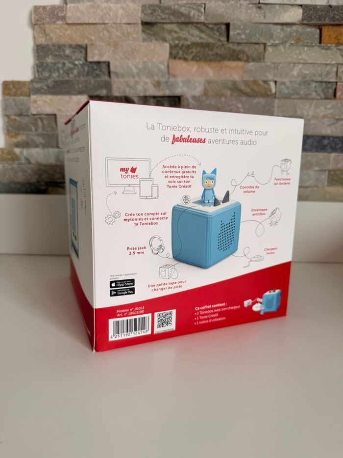 Toniebox 1 neuve, emballage scellé jamais ouvert. Couleur bleue. Version française avec créatif bleu. Cadeau fait par erreur. Vendu avec le bon de livraison.