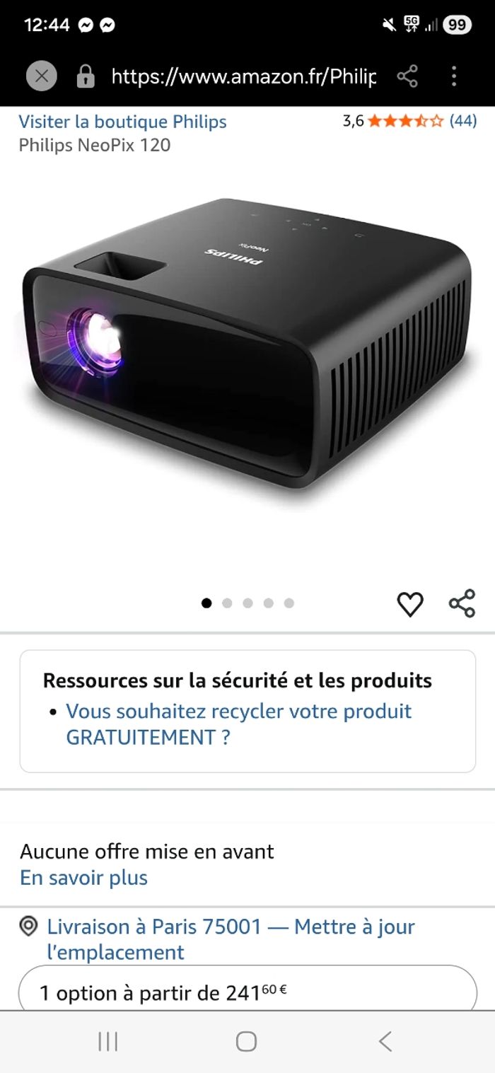 Projecteur PHILIPS Neopix 120 Neuf prix 79 Euros.