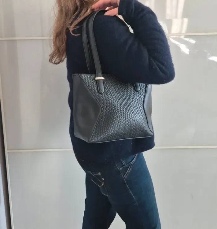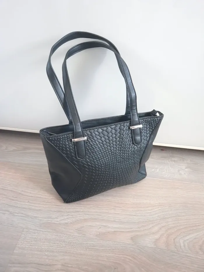 Sac à main noir, synthétique, 1 poches extérieur, 2 anse, se porte à l'épaule pas de bandoulière ➡️ Cuir synthétique ➡️ Dimension 27 cm x 21 cm x 9 cm ➡️ Longueur anse 22 ⭐ Excellent état ✈Envoi rapide des colis 💗 Abonnez vous à mon profil, nombreux articles ajoutés régulièrement ! 🌸 Tapez Laetitresors pour voir mes annonces #laetitresors_sac #sac #main #noir #cabas #tressere #rigide