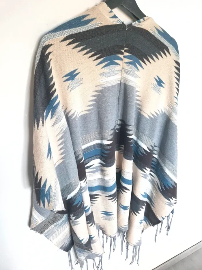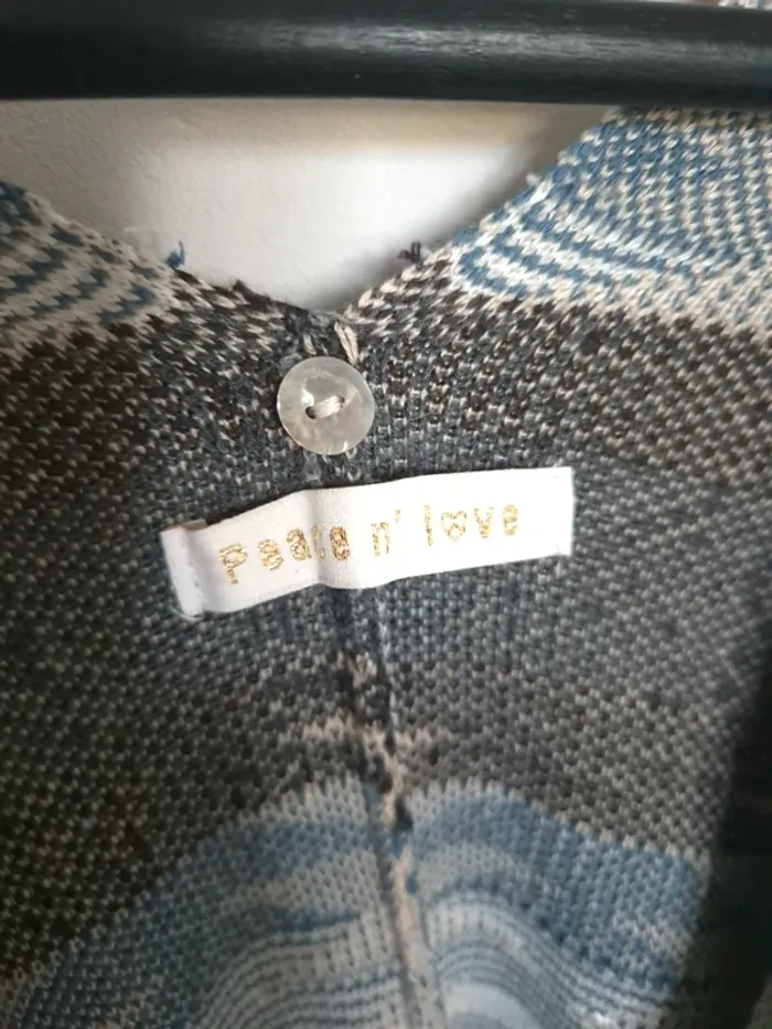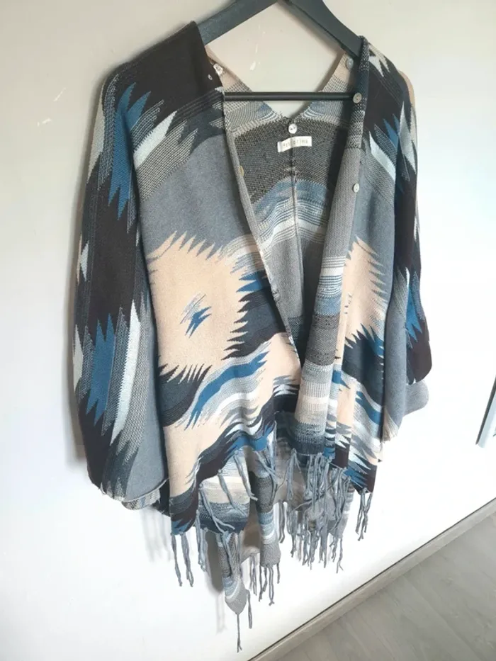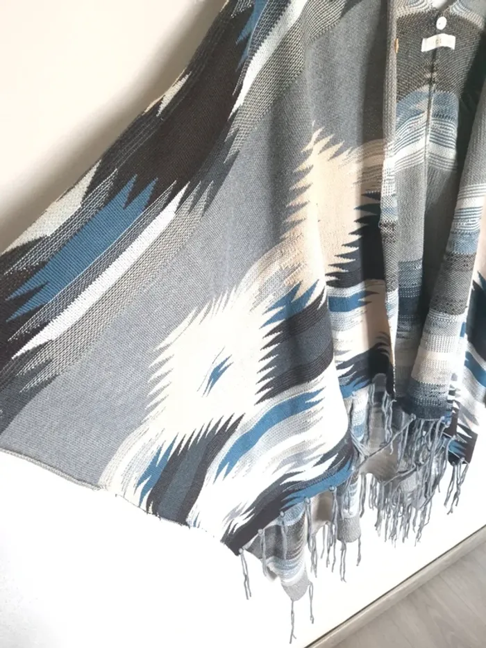 Poncho, bleu et beige à motif, très doux, sans fermeture ➡️Largeur à plat sous les bras cm ➡️Longueur 82 cm ➡️ 100 % Polyester ⭐ Excellent état ✈Envoi rapide des colis 💗 Abonnez vous à mon profil, nombreux articles ajoutés régulièrement ! 🌸 Tapez Laetitresors pour voir mes annonces #laetitresors_cardigan38 #poncho #veste #gilet #peace #love #bleu #blanc #acrylique