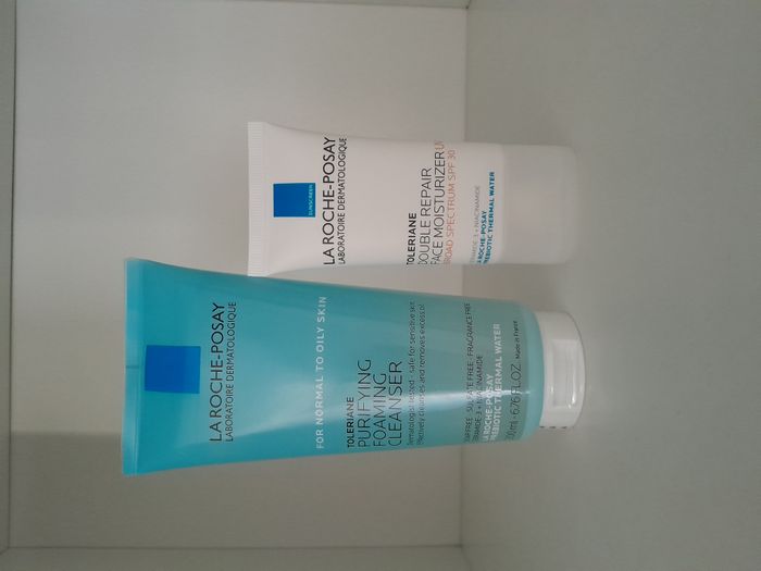 Vends 2 Produits visage Marque La Roche Posay Nettoyer votre peau avec le premier produit dès que votre peau est bien sèche appliquer la crème 1 Nettoyant moussant purifiant Toleriane 200 ml Date de Péremption 05/2027 Neuf sous opercule Débarrassez votre peau normale, sensible ou grasse des impuretés de la journée avec le nettoyant moussant purifiant sans savon Toleriane de La Roche-Posay. Sa formule contient de puissants antioxydants et des céramides pour lutter contre les radicaux libres et l'excès de sébum. Ce nettoyant visage est sans huile, sans sulfate et sans parfum. Antioxydants : combattent les dommages causés par les radicaux libres qui accélèrent le processus de vieillissement. Céramides : aident votre peau à retenir l'hydratation Niacinamide : accélère la production de collagène pour renforcer votre peau et révéler un aspect plus jeune Principaux avantages : Nettoie la peau de la saleté, du maquillage et des impuretés. Élimine l'excès de sébum tout en préservant la barrière d'hydratation naturelle et le pH de la peau. Laisse la peau propre, fraîche et confortable. Ses propriétés moussantes ne laissent aucun résidu obstruant les pores. 1 Crème hydratante Toleriane Double Repair UV SPF 30, votre soin quotidien idéal pour les peaux sensibles. Sa formule sans huile, à la texture légère d'une lotion, pénètre rapidement et facilement, pour un usage quotidien optimal. Enrichie en eau thermale prébiotique, cette crème hydratante offre une hydratation intense et apaise la peau, la nourrissant et la protégeant des agressions quotidiennes. La glycérine, un humectant naturel puissant, attire l'hydratation vers la peau, la laissant souple et éclatante de santé. Les céramides essentiels contribuent à restaurer et renforcer la barrière protectrice naturelle de la peau, pour une hydratation durable. Grâce à sa protection solaire à large spectre SPF 30, cette crème hydratante hydrate et protège votre peau des rayons UV nocifs, devenant ainsi un indispensable de votre r