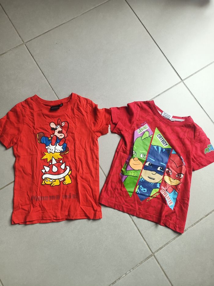 Je vends ce lot de 2 tee-shirts manches courtes pour enfant garçon, taille 6 ans. Des pièces colorées et amusantes, parfaites pour le quotidien de votre enfant. - Type de produit : Tee-shirt manches courtes - Univers : Enfant garçon - Taille : 6 ans / 116 cm - Couleur : Rouge - Quantité : 2 pièces - Caractéristiques : Motifs imprimés colorés Mario Bross et pyjamasks N'hésitez pas à me contacter pour plus d'informations ou de photos.
