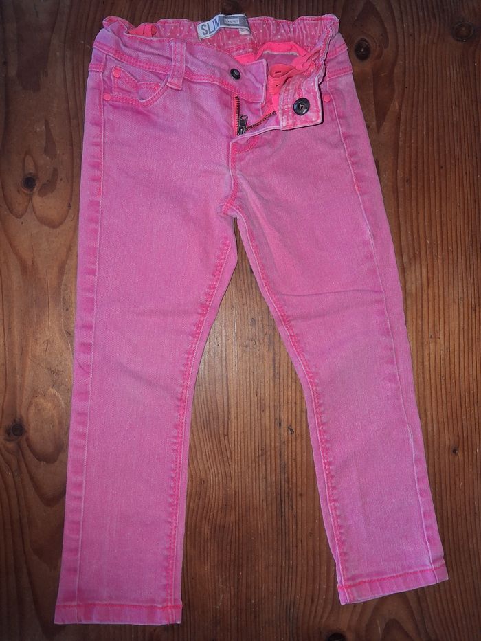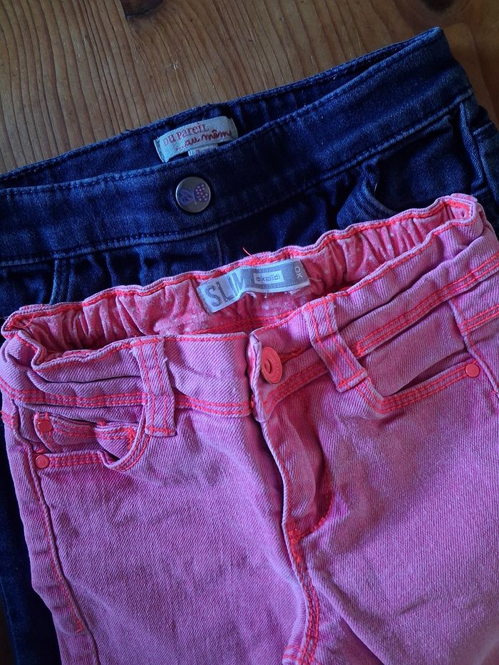 Lot de 2 jeans fille 3 ans : - Le bleu : Du Pareil au Même 98 cm - Le rose : Okaïdi 94 cm