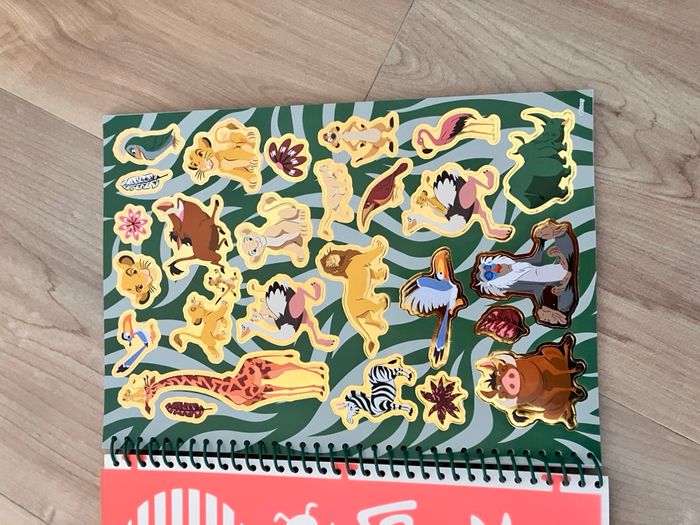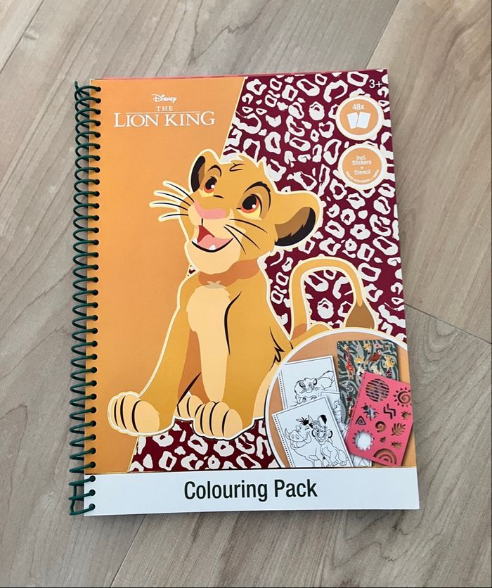Cahier d’activités Disney Le Roi Lion, idéal pour les enfants à partir de 3 ans. ✨ Contenu : • 48 pages de coloriages • Stickers inclus • Pochoirs (stencil) • Cahier relié spirale, facile à utiliser 📘 État : neuf / très bon état (à adapter selon le cas) 📏 Format pratique, parfait pour occuper les enfants à la maison ou en déplacement. 🎁 Idéal comme petit cadeau ou activité créative pour les fans de Disney et du Roi Lion.