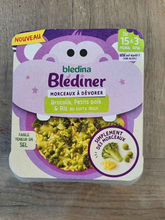 A vendre un repas de nuit pour bébé a partir de 15 mois . Morceaux a dévorer brocolis, petits pois et riz au curry doux qui se périme le 04/06/2026.