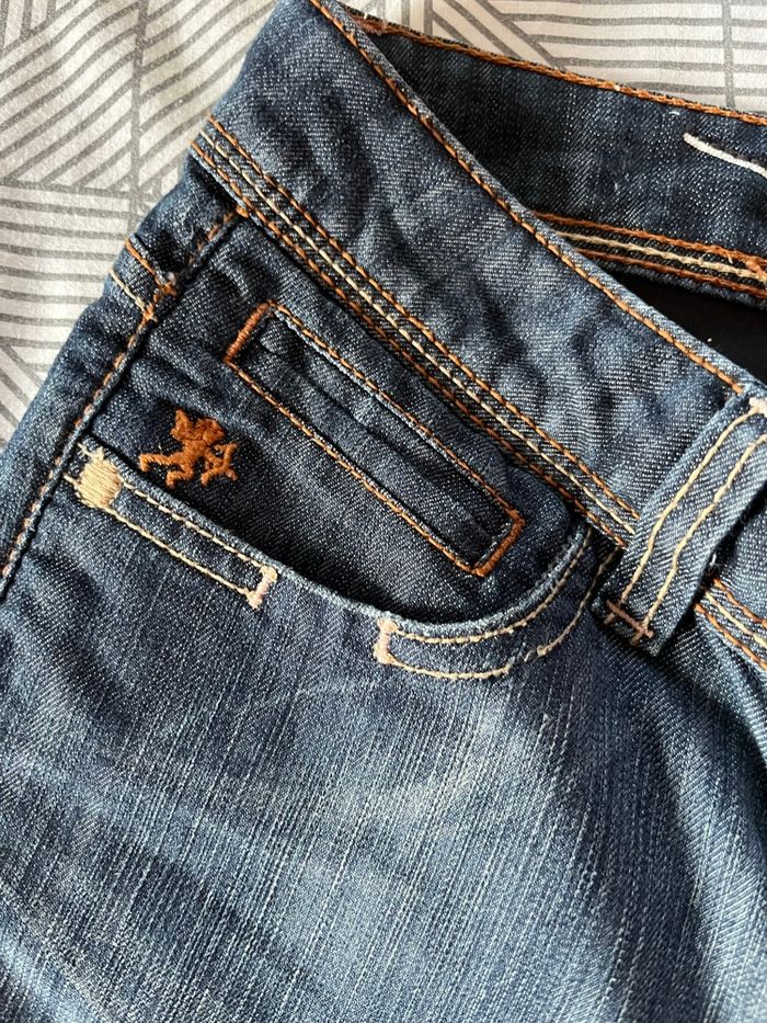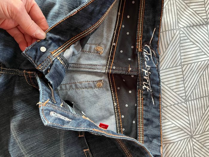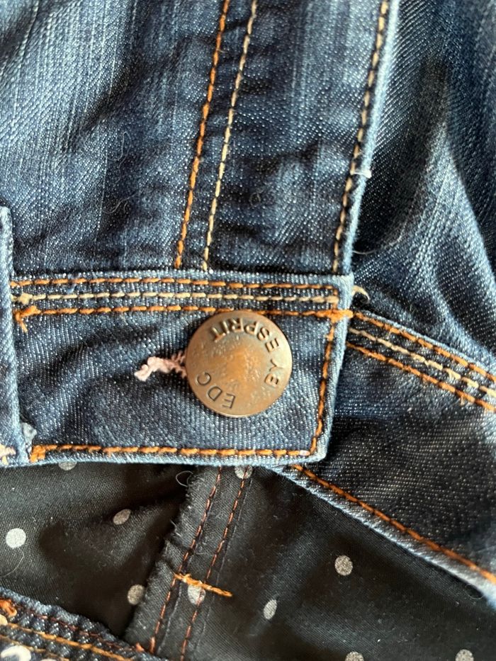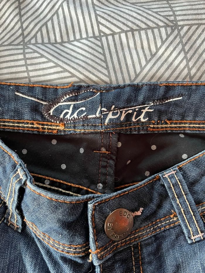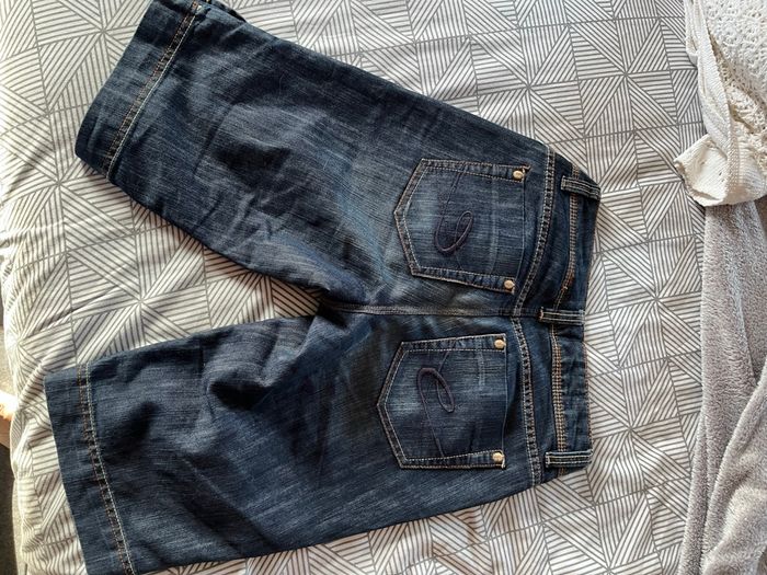 pantacourt EDC femme tres bon etat, fentes boutons metalliques sur cotes, 4 poches aucun defaut, taille américaine 29 ce qui correspond a un 38 longueur 52 cms taille à plat 38