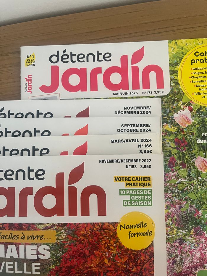 5 magazines Détente jardin En très bon état Dates de parution sur la deuxième photo Prix pour le lot, indissociable merci.
