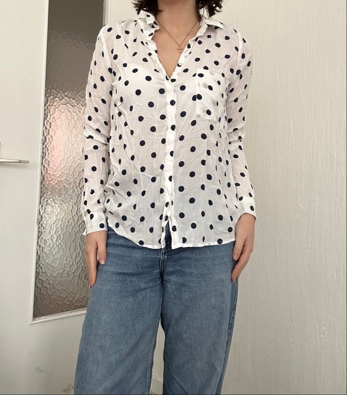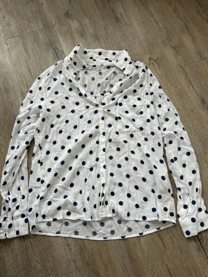 Chemise à pois blanche et bleu marine M Pull&Bear  - photo numéro 1