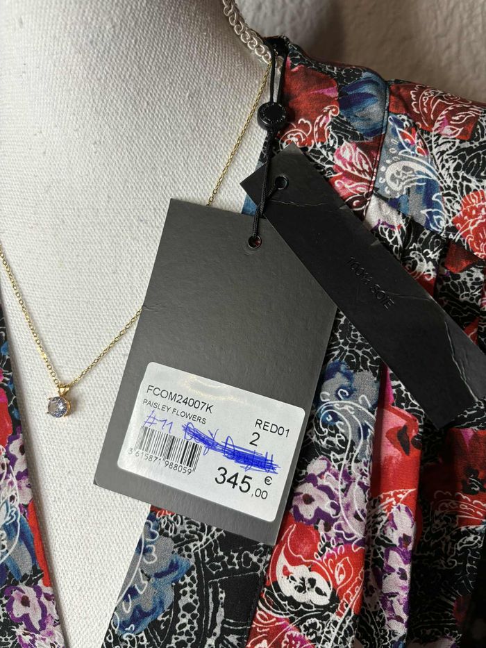Sublime combinaison pantalon The Kooples au motif floral et cachemire très élégant. Fluide, légère et ultra luxueuse grâce à sa composition en soie. • Marque : The Kooples • Matière : 100% Soie (Silk) • État : Neuf avec étiquette (NWT) • Taille : 2 (correspond à un M / 38) • Coupe : Décolleté croisé en V, manches longues, taille marquée. • Prix d'origine : 345€ 💡 LES PLUS • Fermeture éclair sur le côté • Épaulettes • Parfaite pour une cérémonie, un mariage ou une soirée chic #supernanachaton_femme_m_38 #TheKooples #SilkJumpsuit #SilkDress #CombinaisonSoie #LuxuryFashion #WeddingGuest #BohoChic #PaisleyPrint #TheKooplesOfficial #NWT #DesignerWear #Seda #TutaInSeta #ZijdenJumpsuit #SeidenJumpsuit