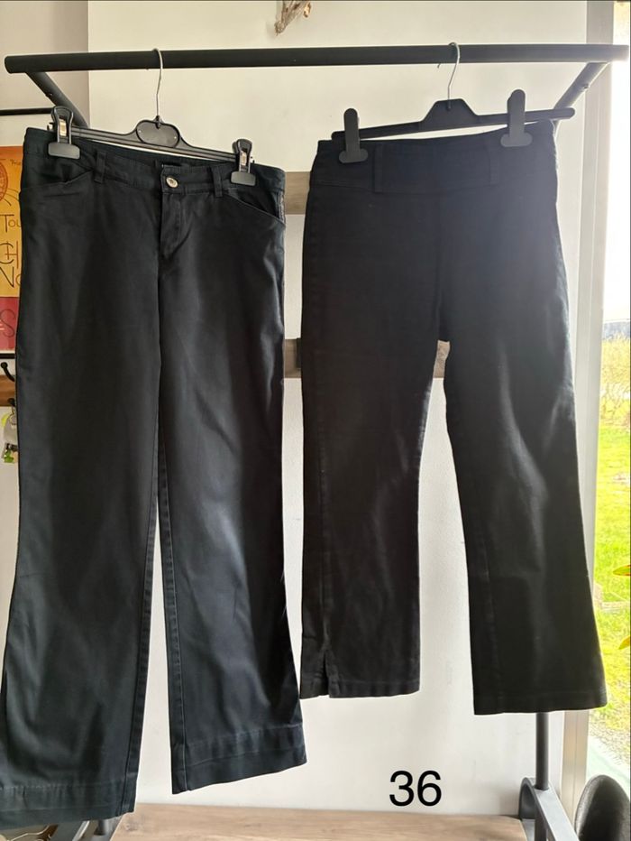 Lot pantalon et pantacourt été ou mi saison noir pour femme : * Pantalon noir avec double liseret doré sur les côtés Avec ourlets , voici donc les dimensions Largeur de taille 38cm Taille jusqu’en bas 92cm Je mesure 1m56 Marque Mango Taille 36 * Pantacourt été stretch noir Fermeture éclair sur le côté Petite ouverture sur le bas Pour l’été Pas d’étiquette mais correspond à un 36 Matière légèrement stretch #stefetjuju51femme3638 maison non fumeurs bien d’autres choses dans mon dressing de nouveaux articles très régulièrement nombreux # dans mon profil pour faciliter vos recherches merci pour votre visite et belle journée #pantalon #Femme #PantalonNoir #Été #misaison #doré