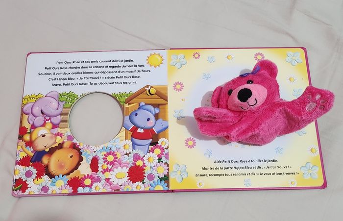 Petit Ours Rose Livre marionnette Couverture abîmé mais intérieur nickel