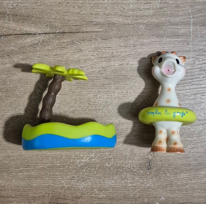 Coffret de bain incluant un livre de bain, des flotteurs, des Sophie aspergeurs et des Sophie à ventouse Sophie la girafe Très bon état