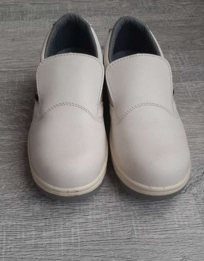 Chaussure professionnelle femme Mocassin de sécurité blanc Élastique de maintien Col rembourré Chaussure anti-dérapantes Prénom à l'intérieur de la chaussure