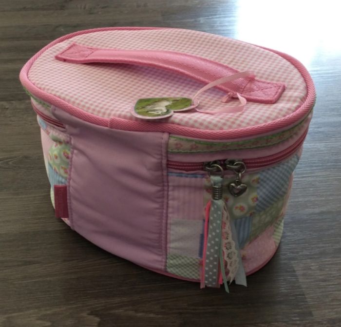 Je vends cette trousse de toilette pour enfant aux motifs roses et fleuris. De style vanity, elle est parfaite pour ranger les affaires de toilette avec style et praticité. - Type de produit : Trousse de toilette - Univers : Enfant - Couleur : Multicolore (rose, bleu, motifs fleuris) - Matière : Tissu, Coton - Fonctionnalités : Fermeture zippée, Poignée de transport, Miroir intégré - Aménagement interne : Compartiments multiples, Doublure rose Très bon état N'hésitez pas à me contacter pour plus d'informations ou des photos supplémentaires.