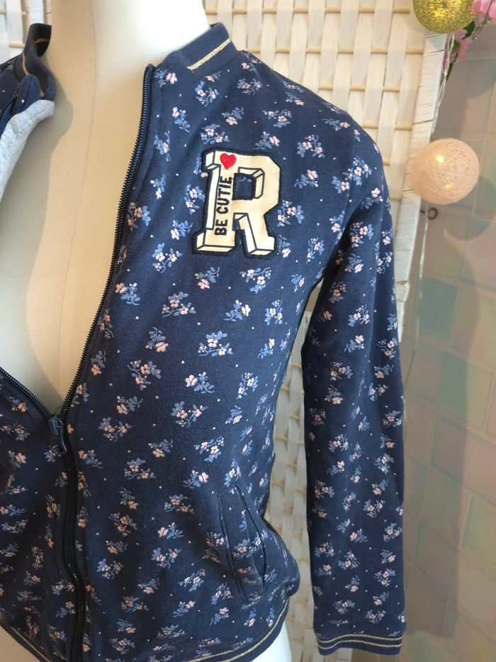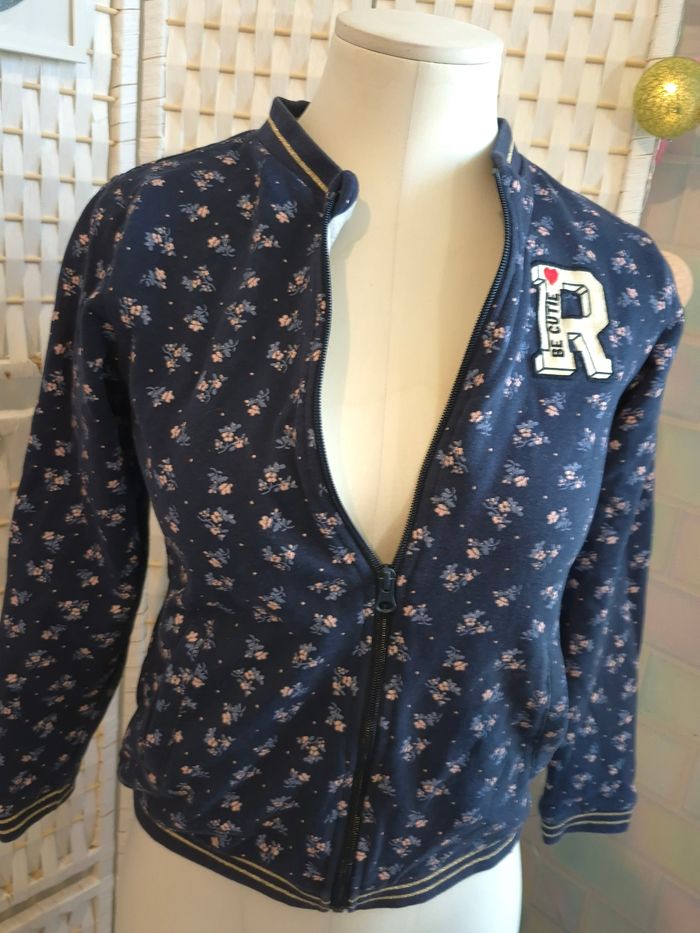 🌸Jolie veste zippée fleurie bleue marine Vertbaudet fille 12 ans (152 cm)