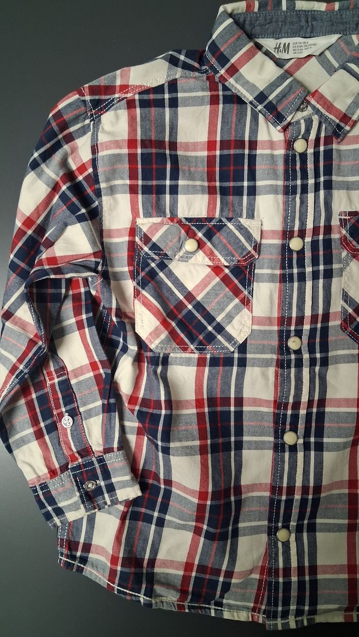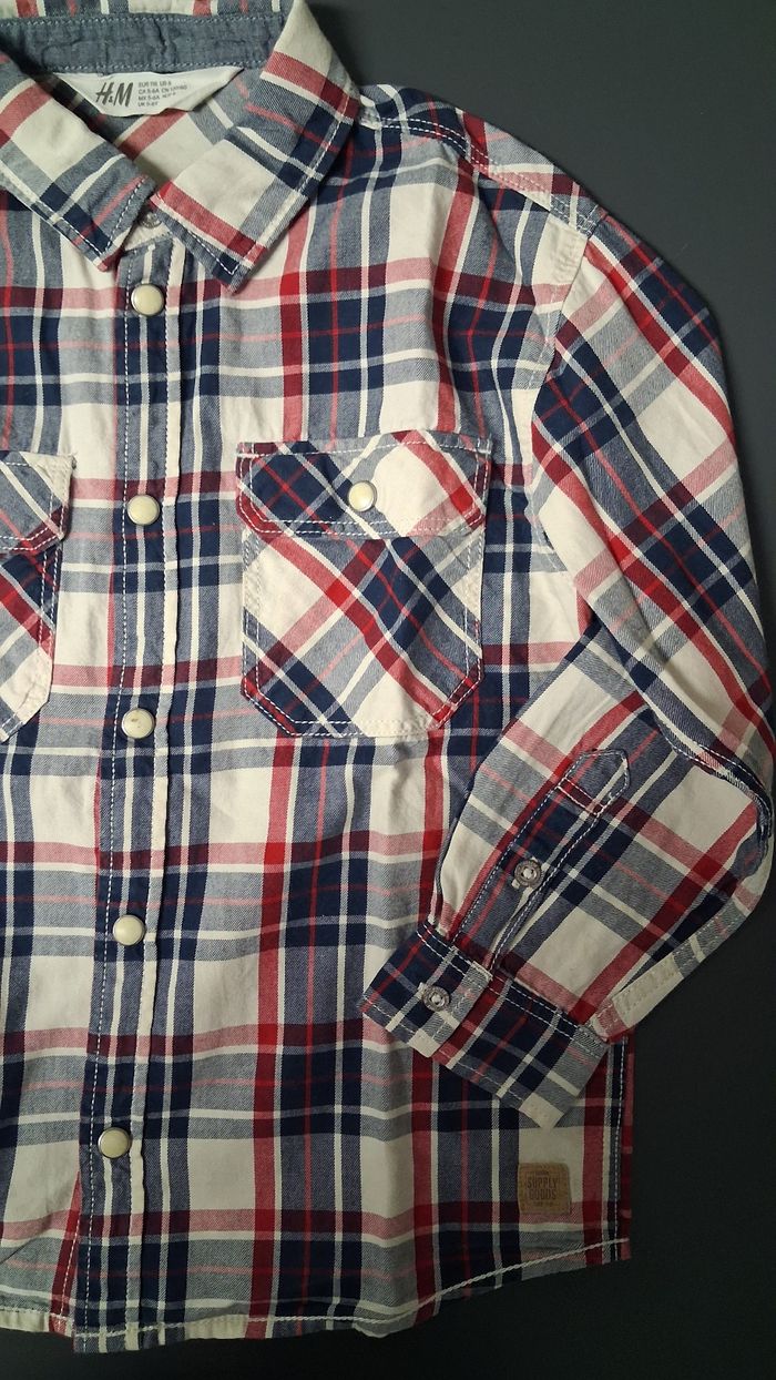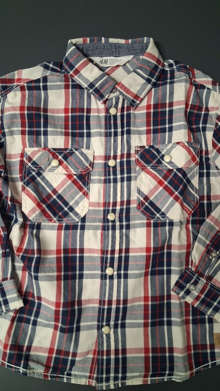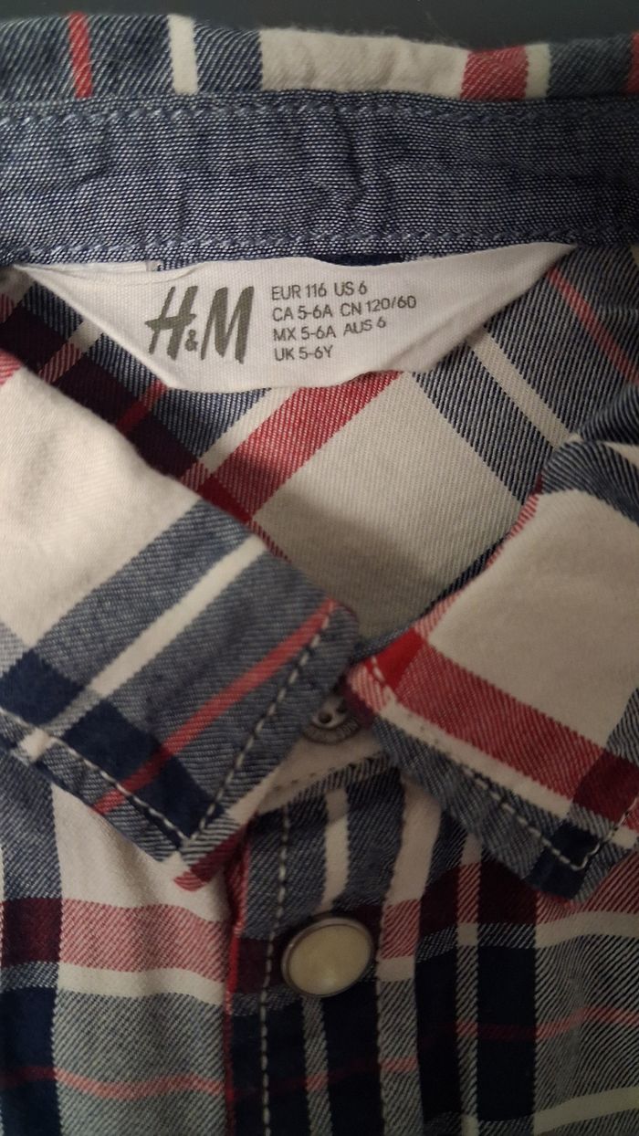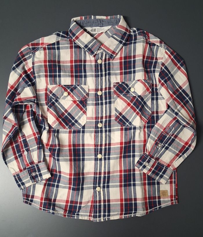 Chemise H&M taille 5-6 ans (116 cm) en très bon état. Motif carreaux rouge, bleu et blanc. Chemise confortable et facile à porter.
