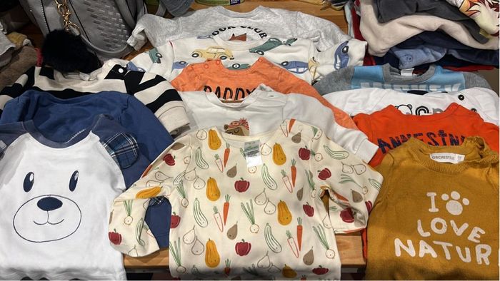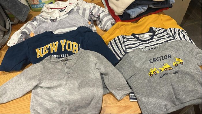 Lots de vêtements 6 mois Lots de pulls pantalons ensemble t shirt et salopettes 4 salopettes 4 tshirts 31 pantalons 3 ensembles 43 pulls