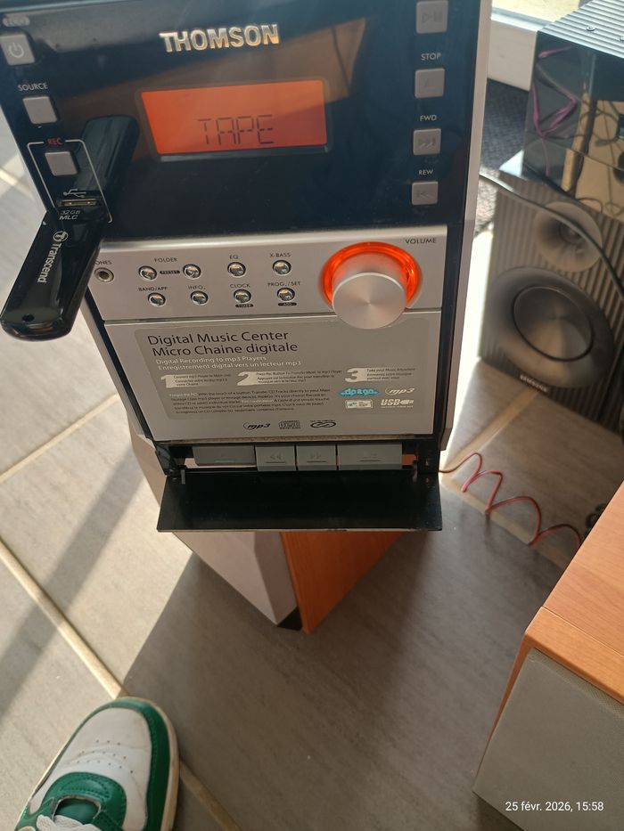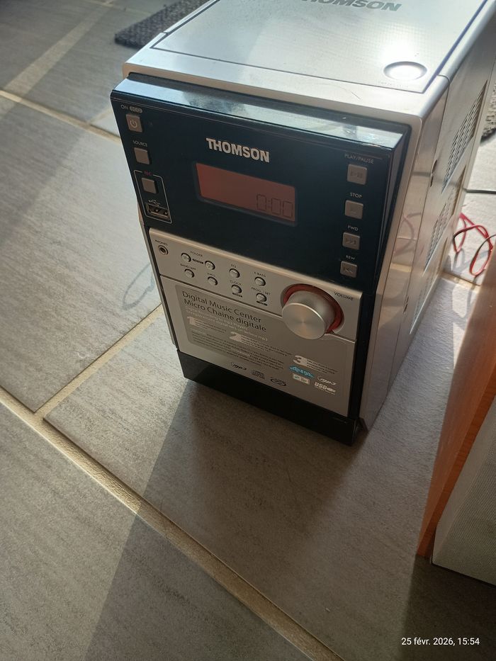 Je vends cette mini chaîne stéréo Thomson pour pièces. - Type de produit : Chaîne HIFI - Marque : Thomson - Modèle : Digital Music Center - Connectivité : Micro-chaîne numérique Pour pièces car hormis la radio, rien ne fonctionne. N'hésitez pas à me contacter pour plus d'informations.