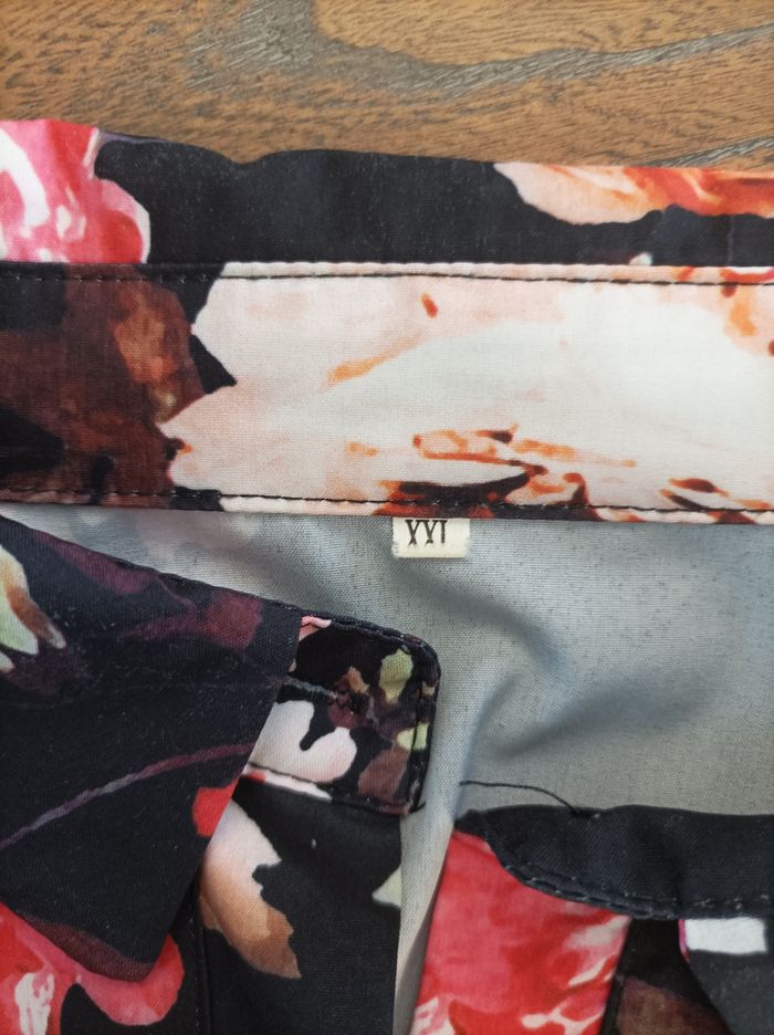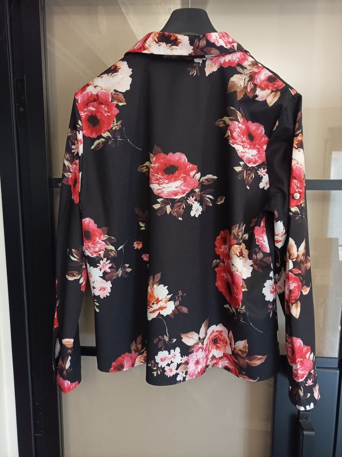 Chemise femme, taille XXL, noir à fleurs rouges. Aisselle à aisselle 60 cm. Très bon état.