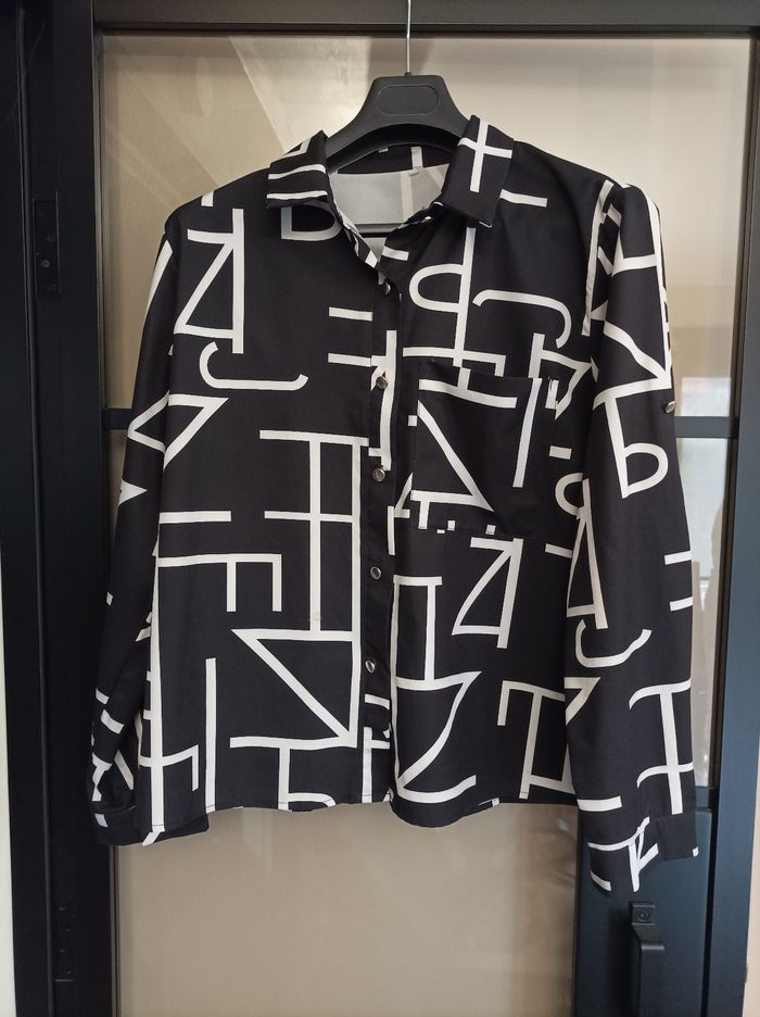 Chemise femme, taille XXL, noir et blanc. Aisselle à aisselle 60 cm. Très bon état.