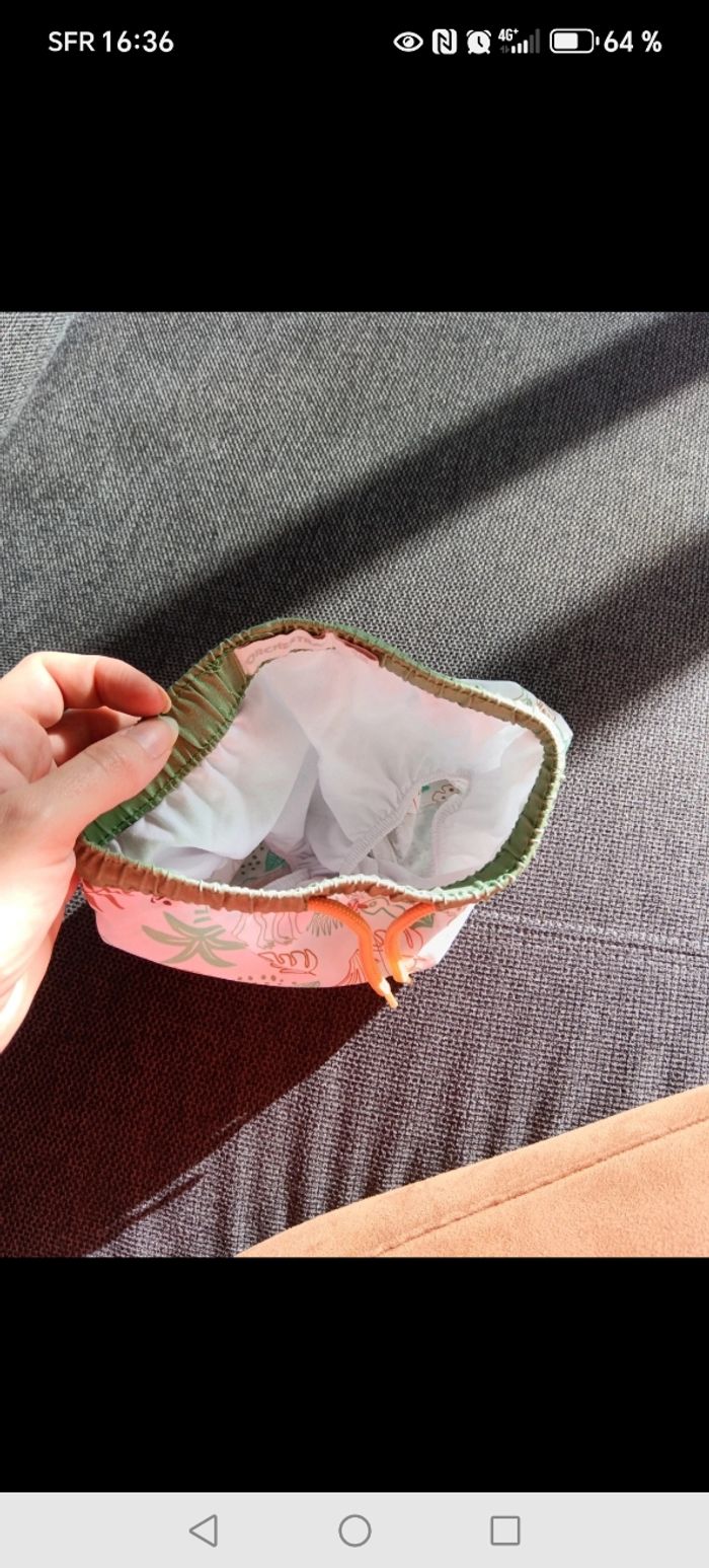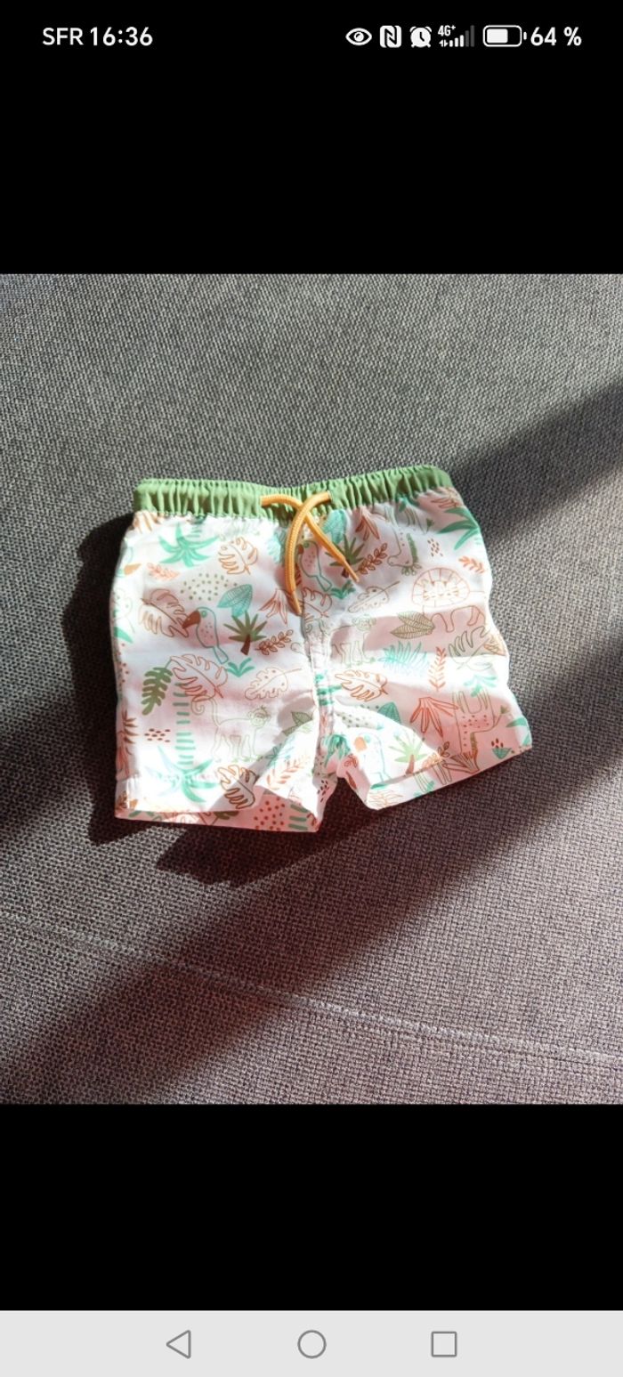 Lot de 2 shorts : - un short bleu en coton - un short de bain avec slip filet intégré