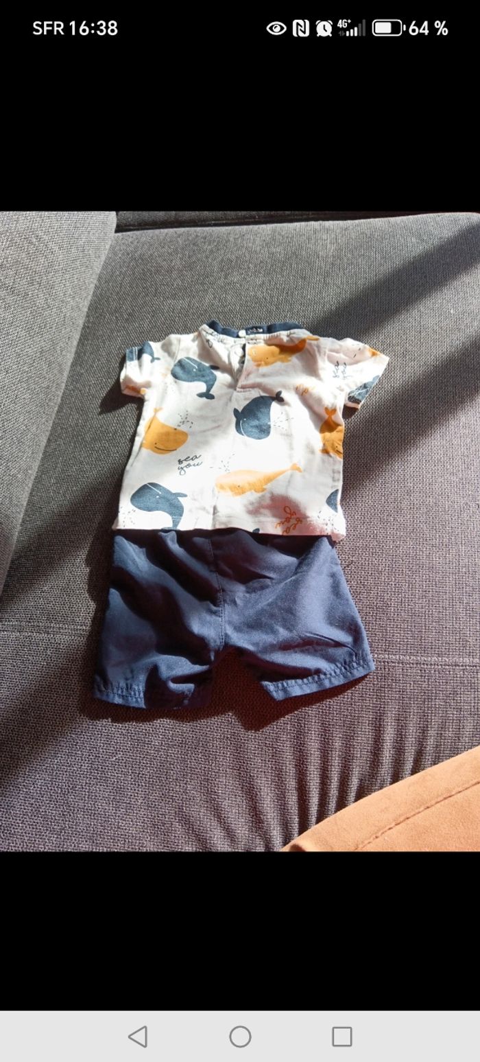 Ensemble composé d'un t-shirt en coton et d'un short en polyester Légère trace au niveau du col, voir photo
