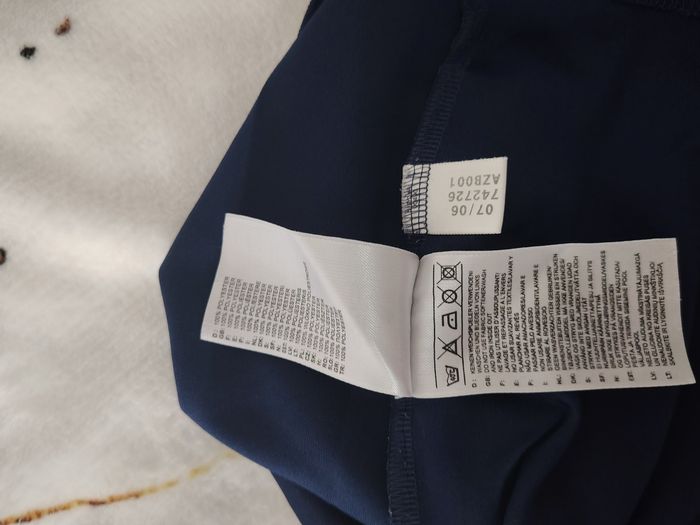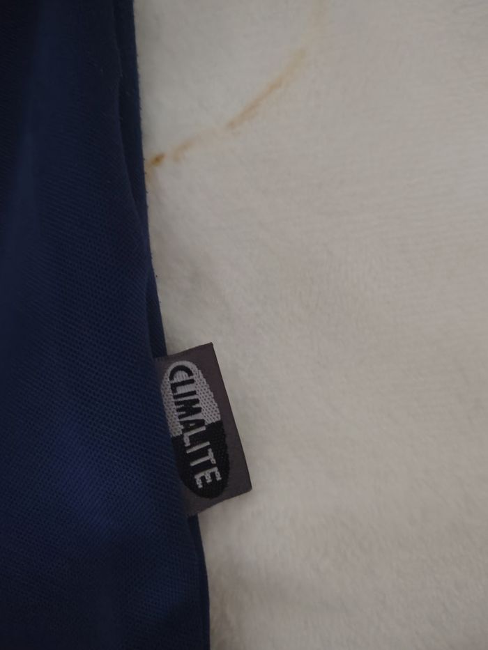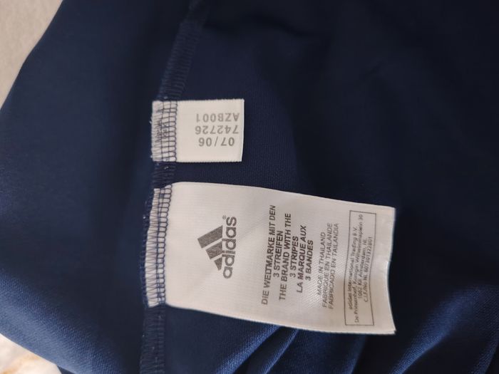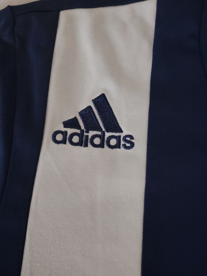 Vends t-shirt de sport Adidas authentique, technologie Climalite (léger et respirant). Design vintage sympa avec une large bande verticale blanche sur le côté gauche et logo brodé. Idéal pour le sport ou un look sportswear rétro. ​Marque : Adidas ​Couleur : Bleu marine / Blanc ​Taille : S (Men) - Voir étiquette photo 3 ​État : Très bon état général ​Détails : 100% Polyester, logo brodé, étiquette d'authenticité présente (Code AZB001). Envoi rapide et soigné