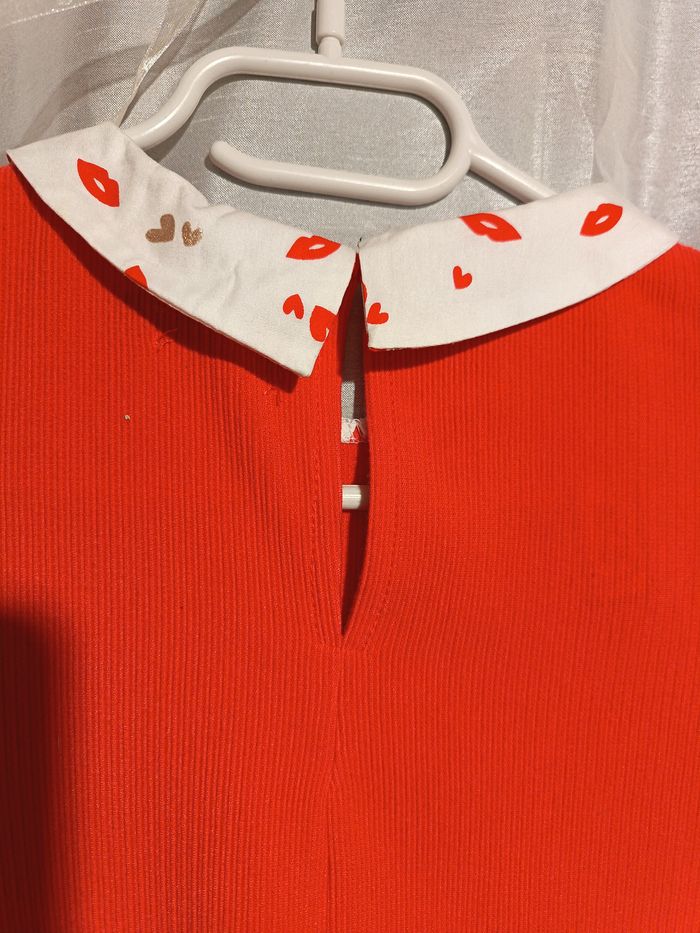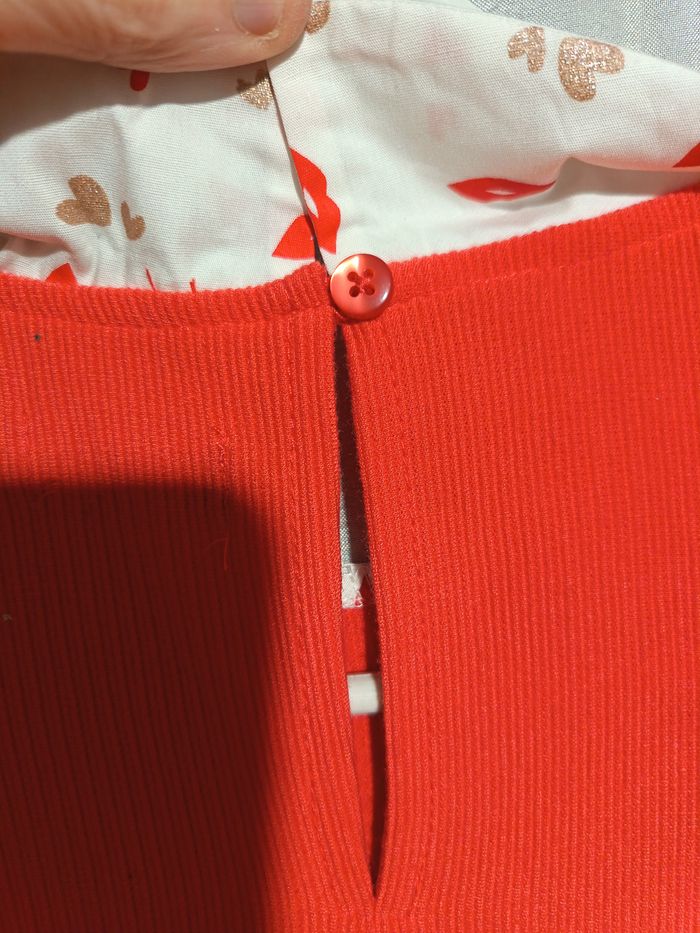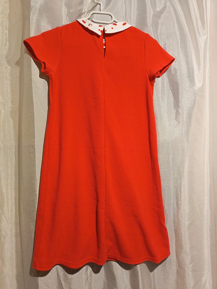 robe orange tissus doux cotelé fermé dans le dos par un bouton petit col claudine largeur épaule 33 largeur poitrine 39 longueur total 86