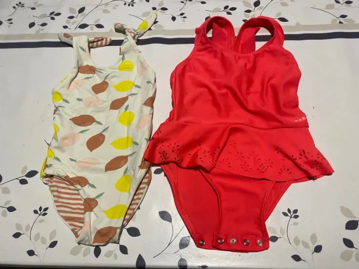 2 maillots de bains en très bon état Tape à l’œil et nabaiji 12 mois et 18 mois