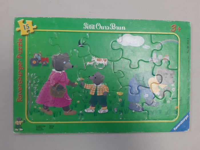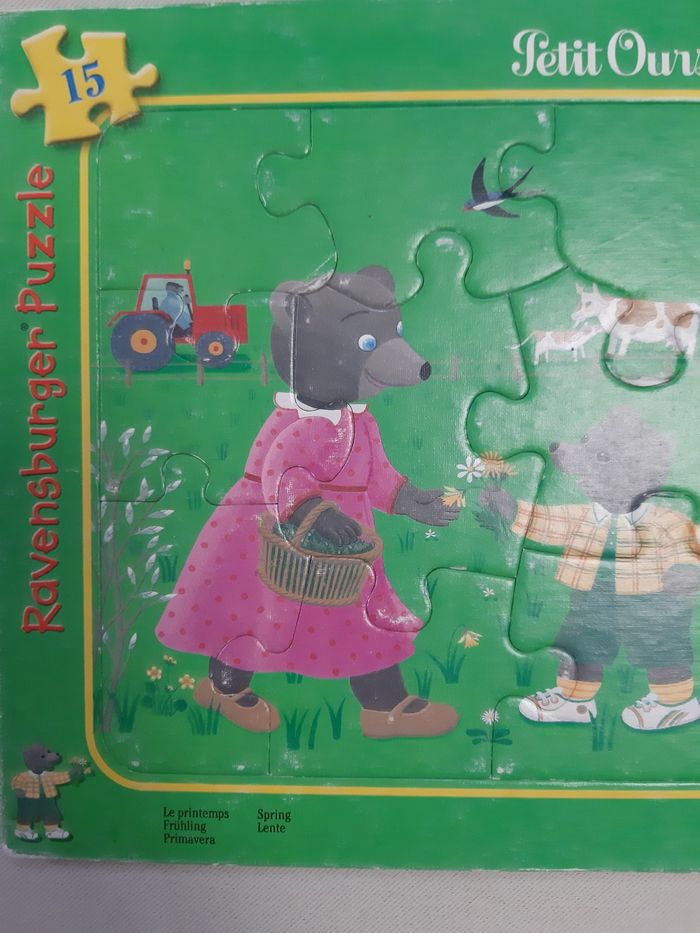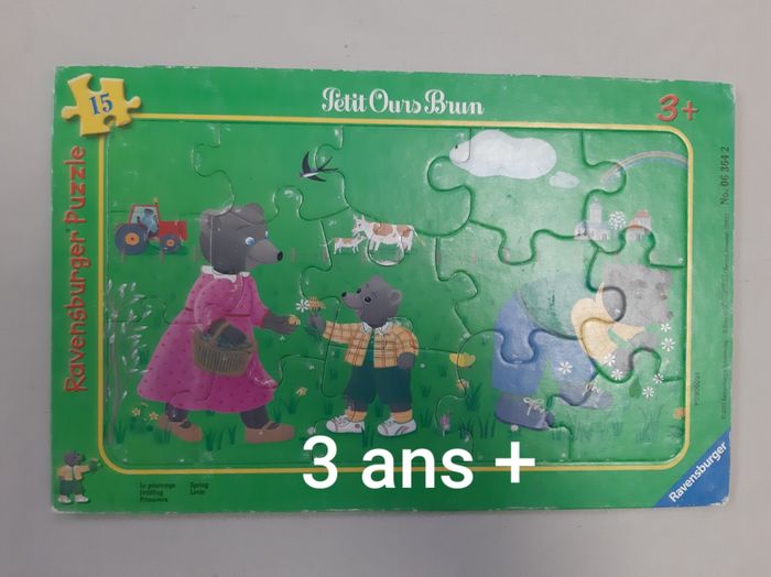 puzzle 15 pièces de Petit Ours brun, de la marque Ravensburger, à partir de 3 ans avec support pour poser les pièces Complet, en bon état. Des livres de la même collection dans mes annonces. (catégorie "loisirs" puis "livres") 🔍 D'autres jeux pour enfants dans mes annonces. Utilisez les filtres pour les retrouver : catégorie "loisirs" puis "Jeux et jouets".😉 📦 Envoi possible. 🛍 Remise en main propre possible dans le secteur de Pont-Audemer, Beuzeville, Epaignes, Pont-L'évêque. 🏷 jusqu'à 15 % de réduction pour l'achat de plusieurs articles. N'hésitez pas à faire un lot pour amortir les frais de port et les frais de protection acheteur. 📦 😊 Vêtements de la taille naissance à la taille 6 ans disponibles + chaussures et chaussons. Jouets et livres disponibles. N'hésitez pas à me demander. Tout n'est pas encore en ligne...