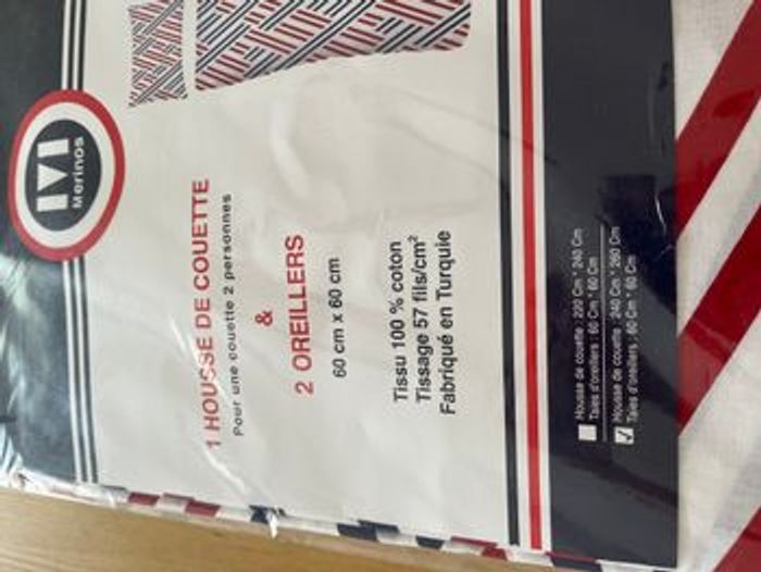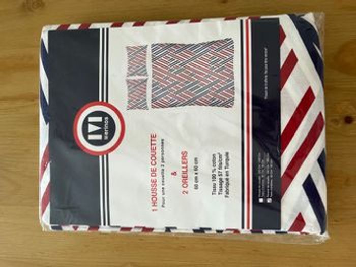 1 Housse de couette 240 x 260 cm 2 Oreillers 60 x 60 cm 100% coton Merinos Neuf dans son emballage d'origine
