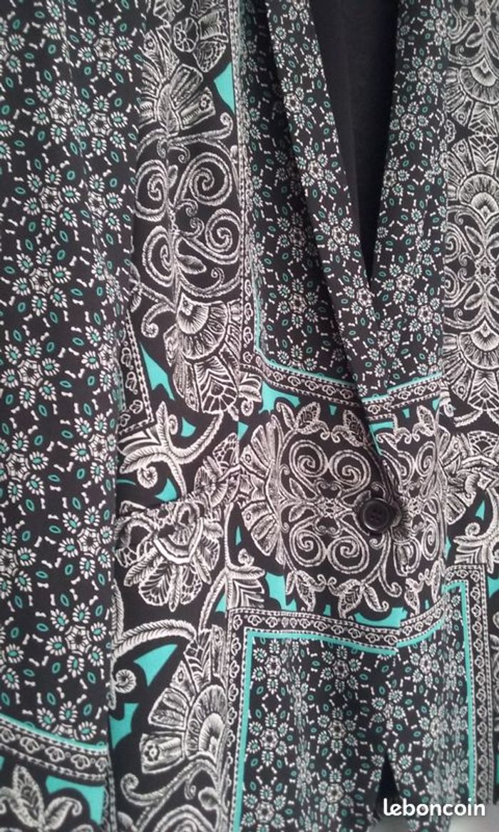Très jolie veste légère 100% polyester! Noire et émeraude. Longueur 66cm.