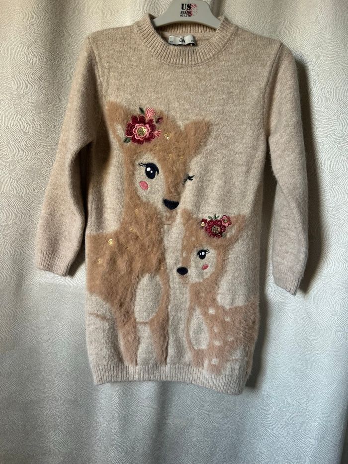 Jolie robe poilue brodée biches 10 ans C&A Bon état car quelques bouloches