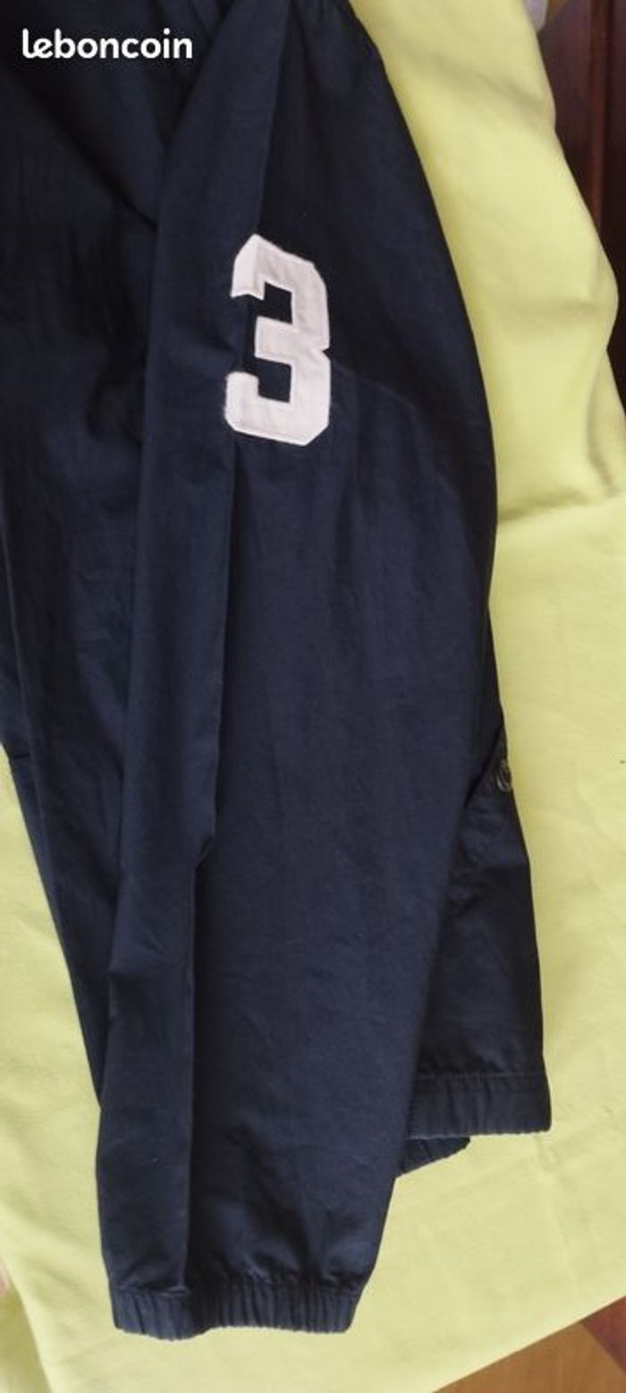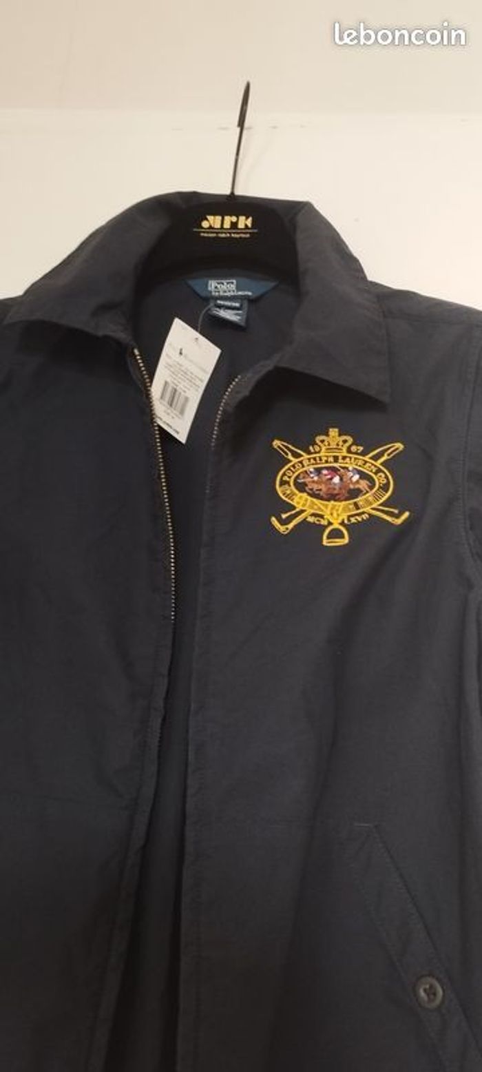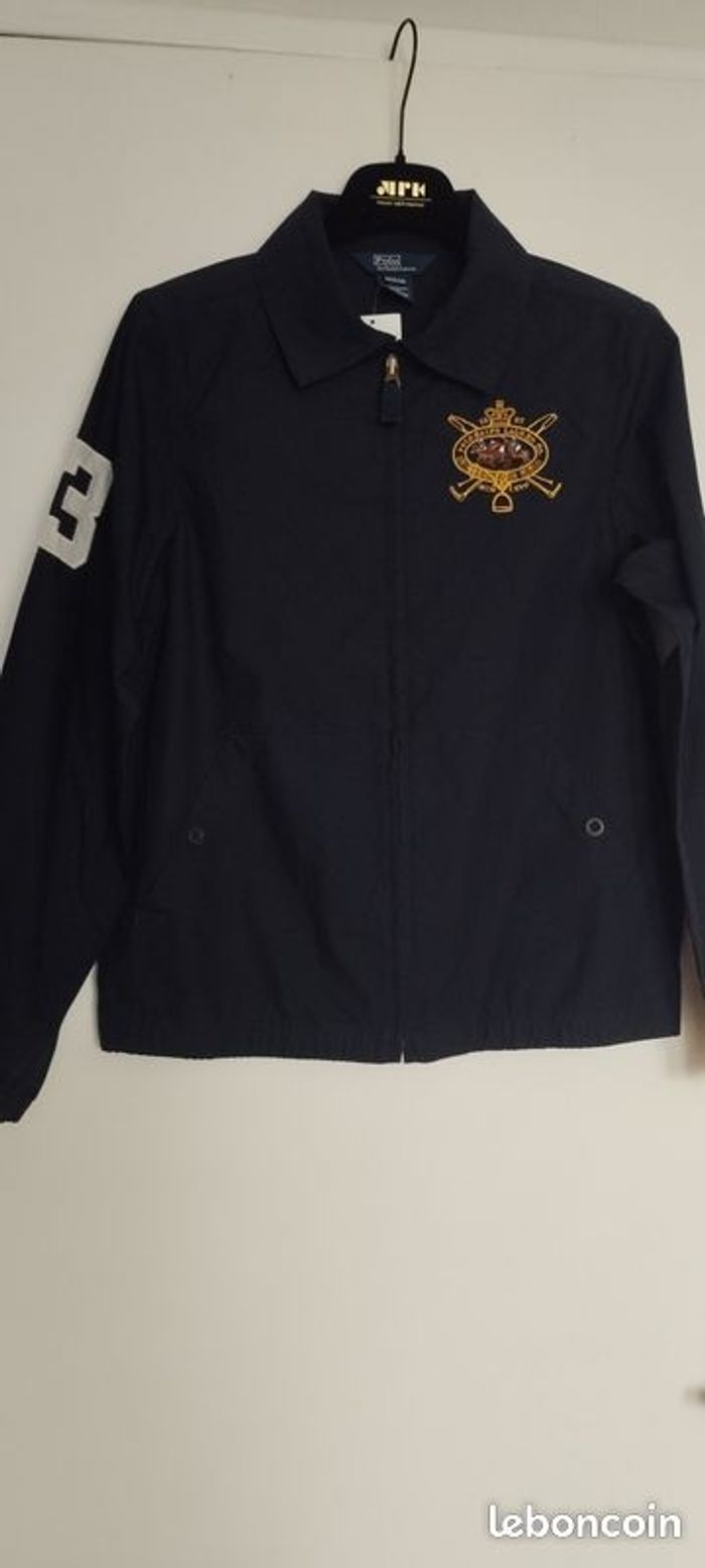 Très belle veste légère Neuf pour enfant 12/14ans de chez Polo Ralph Laurent. Bleu marine foncé, Logo sur le devant, chiffre n°3 sur une manche, 2 poches obliques fermées par un bouton, fermeture éclaire métal avec logo recto/verso. Prix acheté 120€.