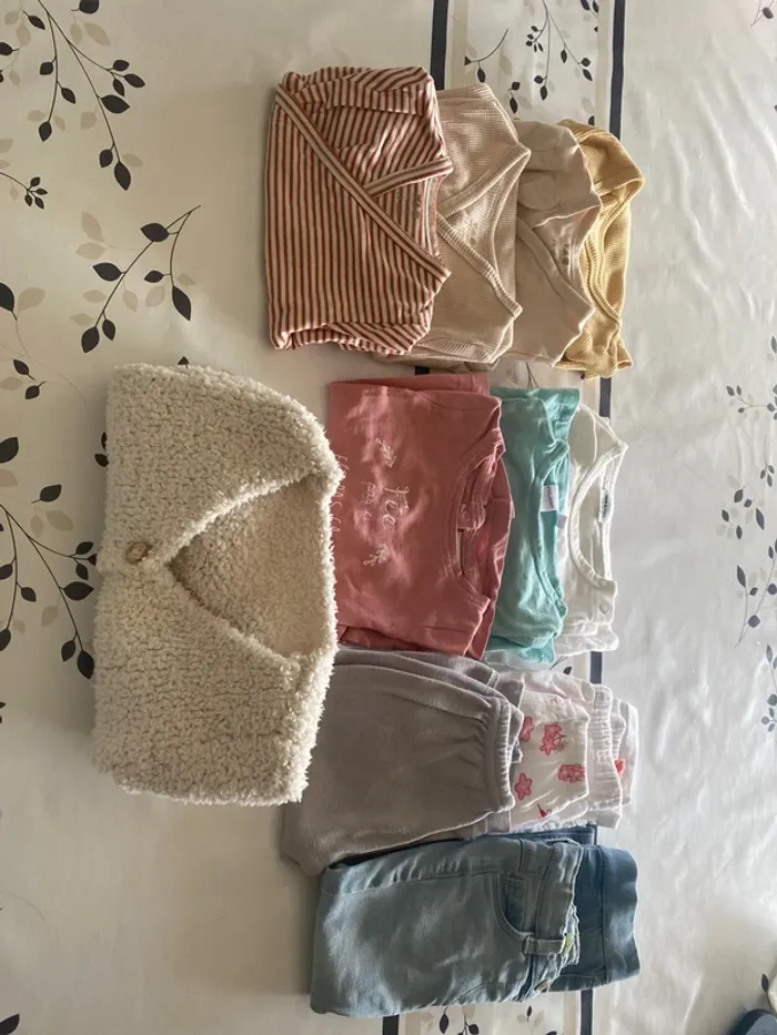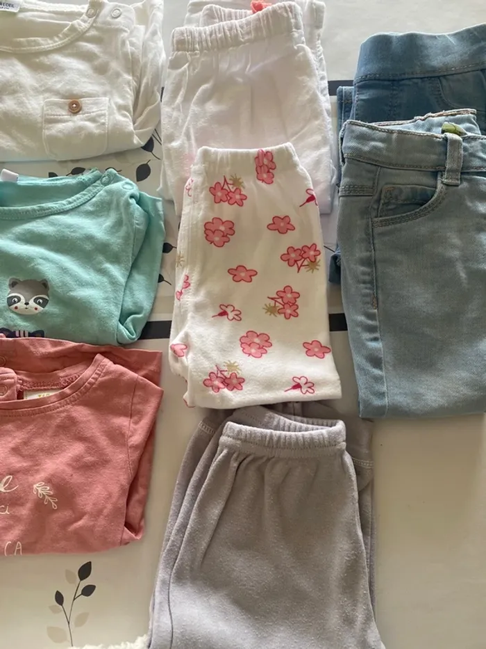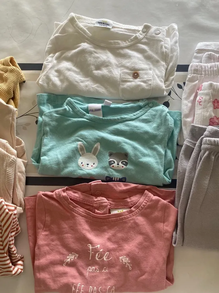 Vend lot fille - 4 body tape à l’œil - 3 tee shirts manches longues 2 tape à l’œil et un Aubert - 3 pantalons légers dont un marque tape à l’œil - 2 pantalons jeans dont un tape à l’œil - une petite veste moumoute ( la couleur des boutons sont passées). Beaucoup d'articles sont en trés bon état