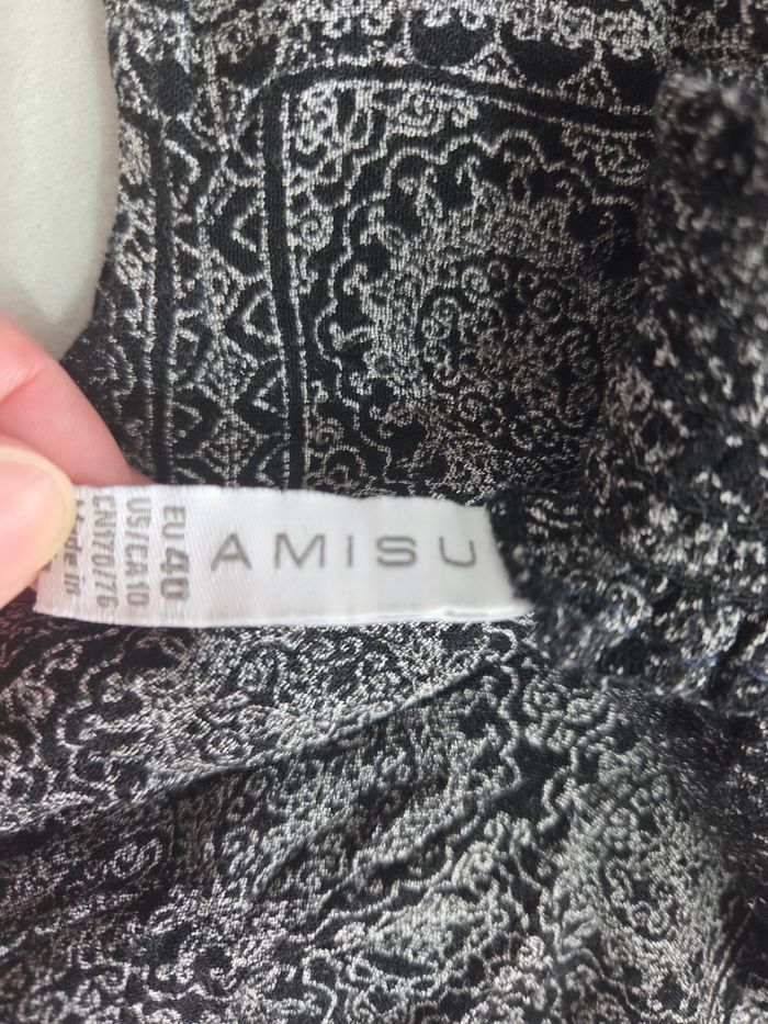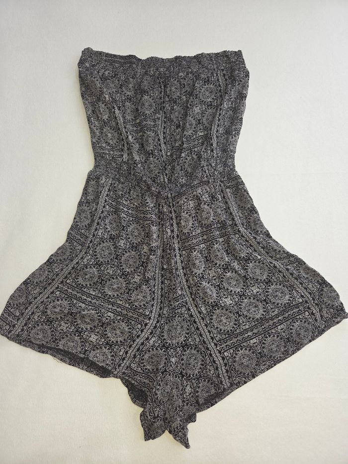 Combishort fluide AMISU 🖤 ✔ Taille : 40 (indiqué sur l’étiquette) ✔ Taille élastique marquée ✔ Coupe fluide et légère ✔ Imprimé noir & blanc style bohème ✔ Idéal été / vacances Confortable et facile à porter avec sandales ou baskets ☀️