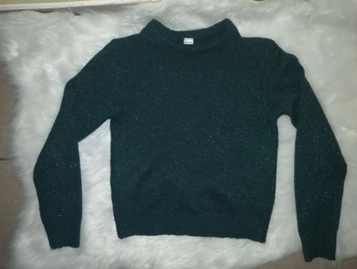 Pull fin fille. Couleur vert bouteille pailleté. Taille 9-10 ans.